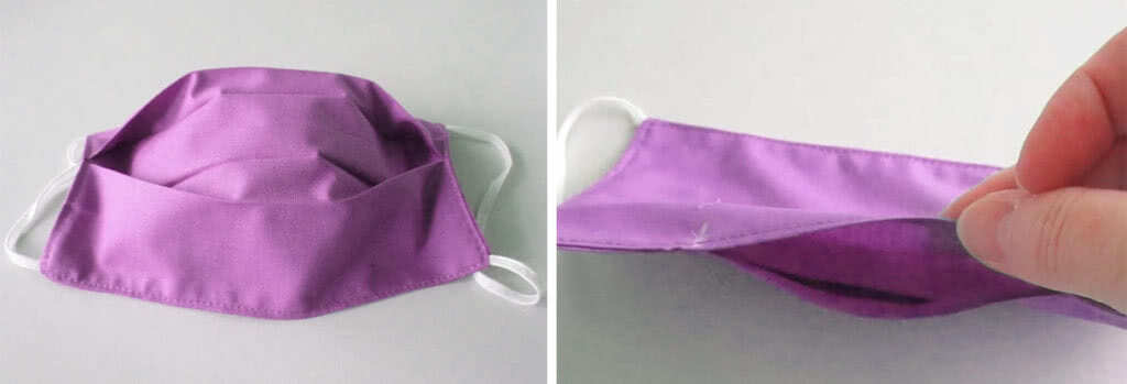 Когда будете надевать маску, то прижимайте её плотнее к лицу, чтобы проволока принимала необходимую форму и лучше прилегала к лицу. Резинку и проволоку можно перед стиркой доставать. Перед использование вложите заготовленный вкладыш во внутренний карман.