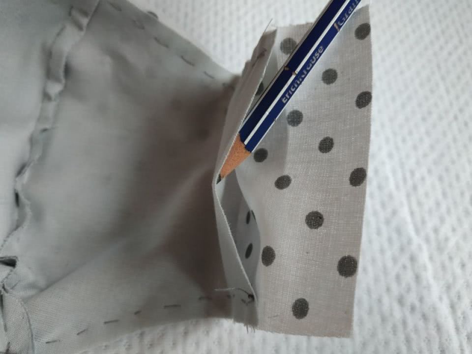 Маска с карманом настолько легка в исполнении, что с ее изготовлением справится даже новичок, умеющий держать в руках иголку, используя правильный шов «назад иголку», даже без машинки.