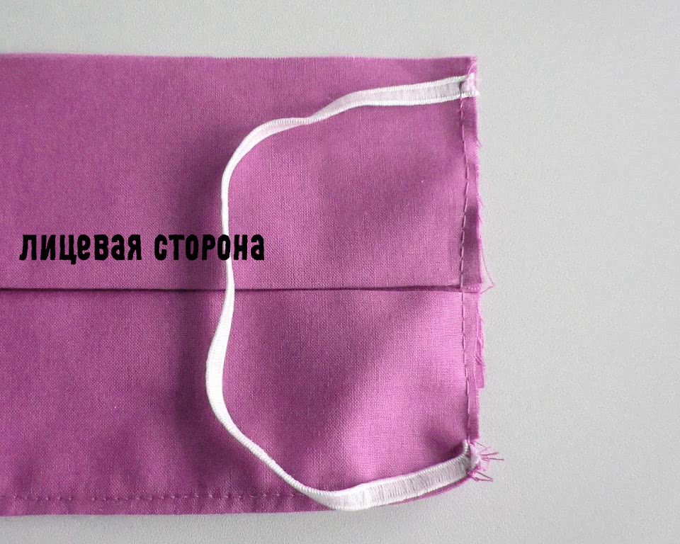 - По аналогии пришиваем резинку с другой стороны и выворачиваем маску наизнанку, через сторону, которая осталась не прошита.