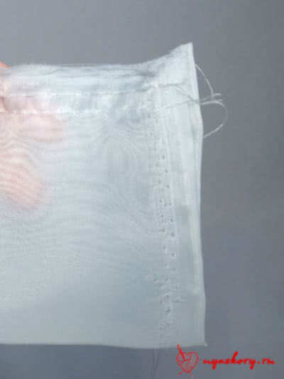 Если у вас остался небольшой запасик оборки, то можно шов слегка спрятать, заложив небольшую складочку. Осталось зашить оставленное отверстие.