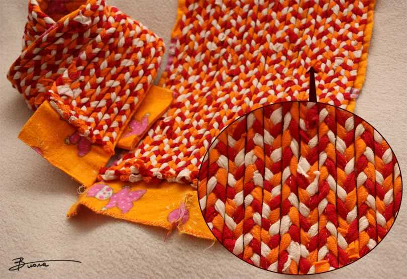 - Лоскуты от разных вещей перед плетением следует накрахмалить и отпарить.