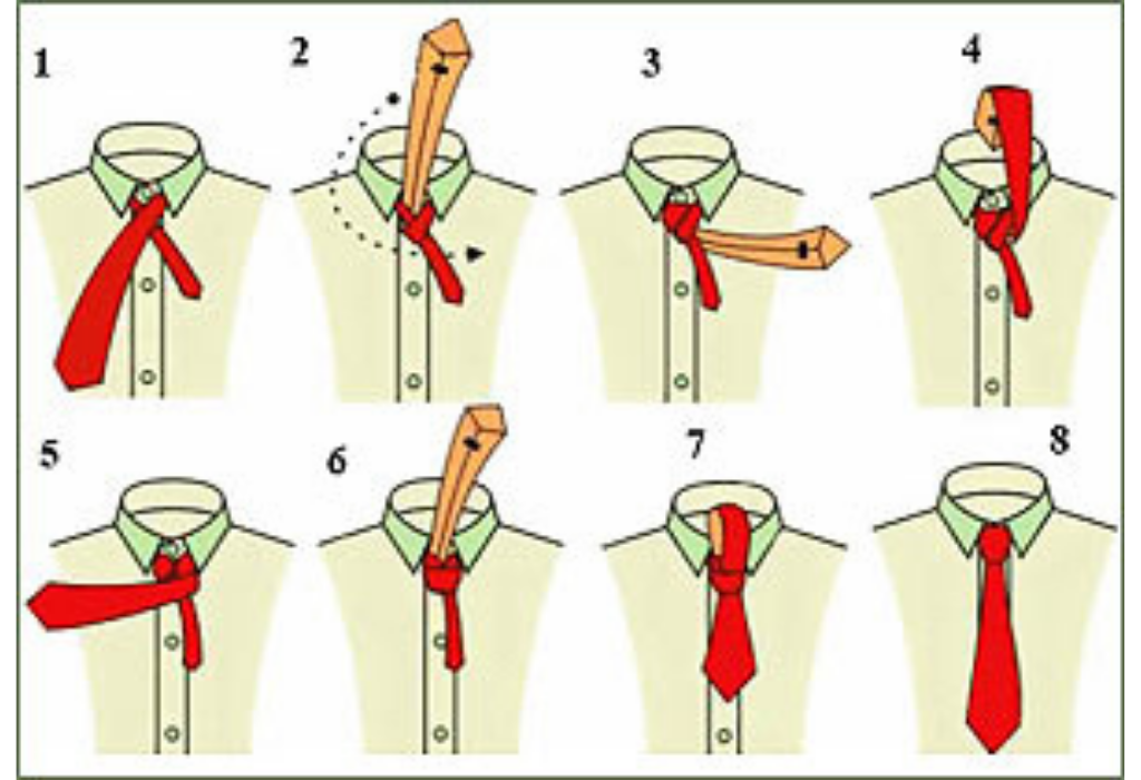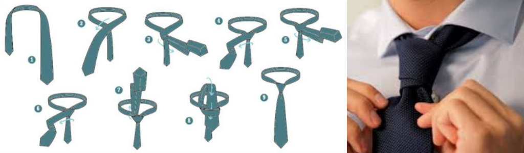 Перед тем как завязать галстук правильно этим способом – потребуется длительная тренировка. Чтобы его завязать правильно и красиво – придется проделать такую последовательность операций: