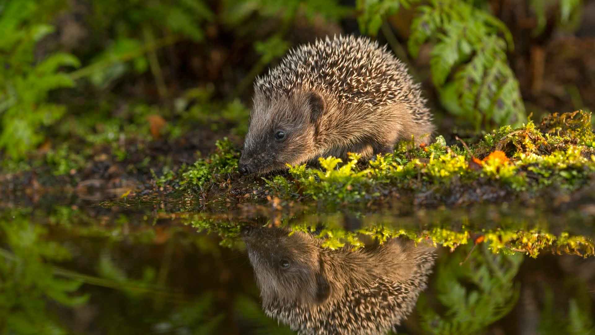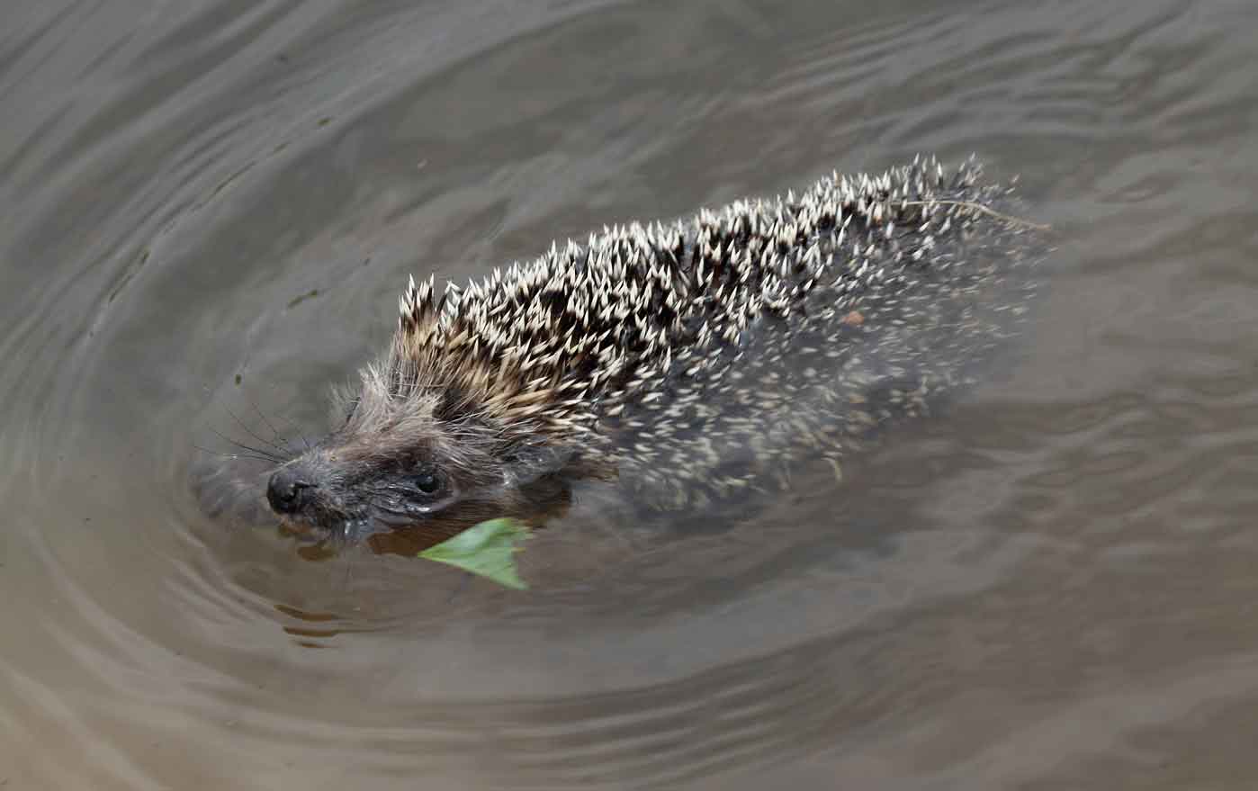 проверенным способом — заходит в воду до кончика носа. Но стоит ежику пройтись лесными зарослями, как его иглы снова загрязняются.