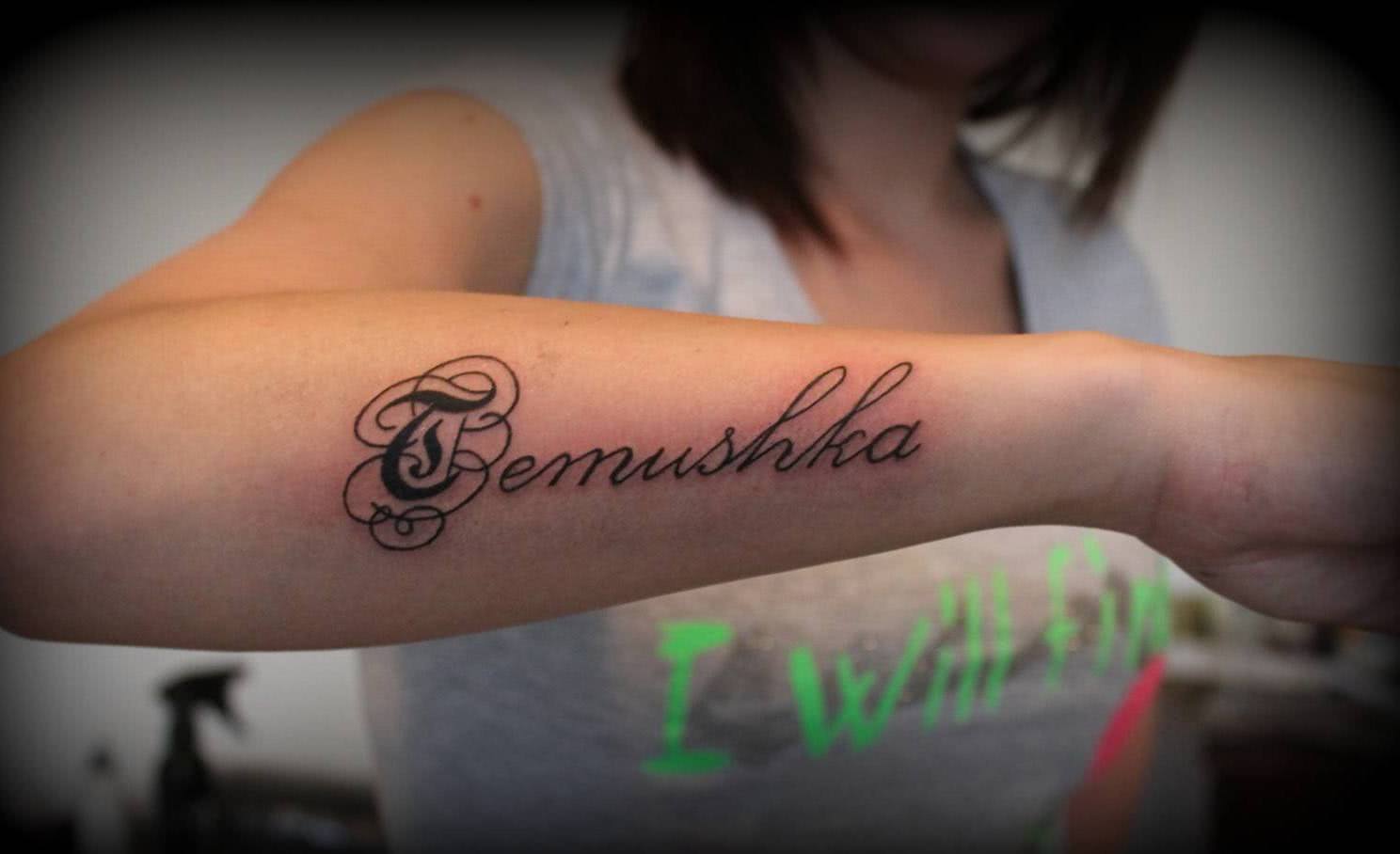 Для девушек лучше всего подходит стиль написания с плавными, тонкими, закругленными линиями. Это подчеркнет нежность, хрупкость и шарм обладательницы. Мужчинам характерен грубый и массивный шрифт. Очень часто имена переводят на различные языки, например, латынь, китайский или английский. Так татуировка будет выглядеть необычно и привлекательно.