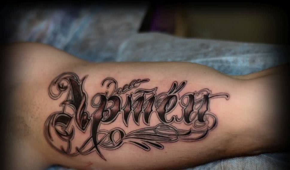 - Бицепс – отличное место для нанесения рисунка с именем любимой девушки или супруги.