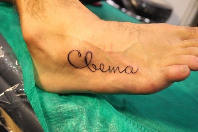 - Ступни – неплохой вариант для выполнения татуировки с именем кумира.