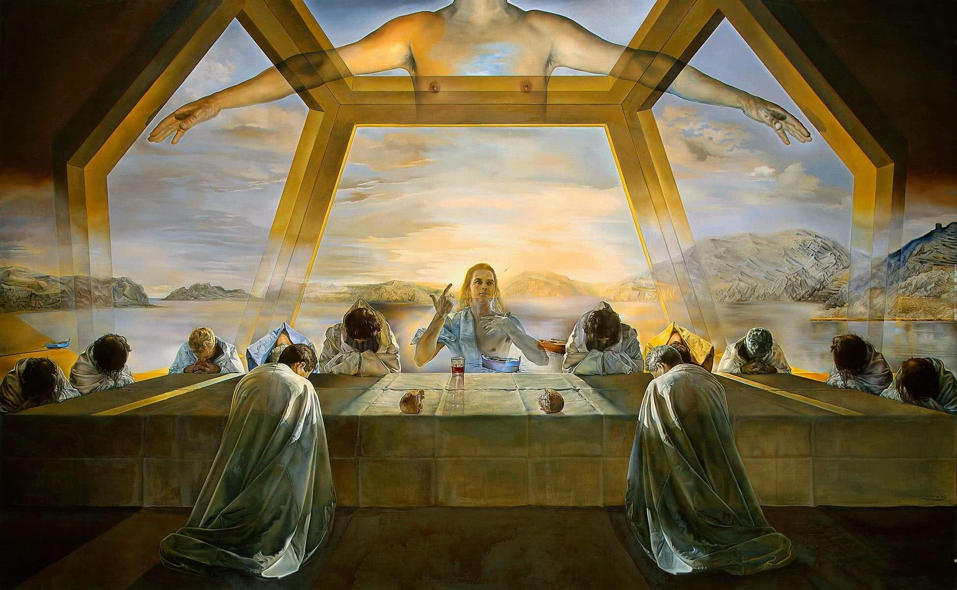 Дали, достигнув средних лет, последовал примеру своего отца, отрёкшегося от атеизма и ставшего примерным католиком. Начиная с 1949 года, художник пишет картины на религиозные темы. В том же году он удостоился аудиенции у Папы Пия XII. В Испании существуют давние и сильные традиции религиозной живописи. Дали видел себя их продолжателем, однако трактовал знакомые темы — Распятие Христа, Тайную вечерю, Деву с младенцем — очень необычно. Это вызывало разноречивые толки. Американский коллекционер Честер Дейл, выставлявший в нью-йоркском музее Метрополитен картину Дали «Распятие», 1951 год, назвал её «очень честной и по-настоящему великой». Американский критик Джон Кэнедей, напротив, посчитал это полотно «вульгарным проявлением нездорового эротизма». Точно так же он охарактеризовал и «Тайную вечерю», 1955 год.