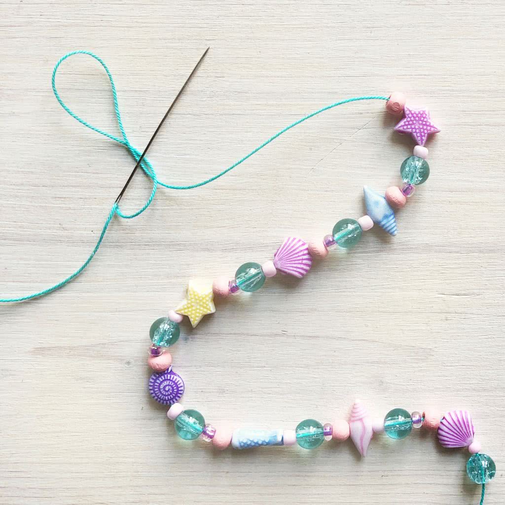 Реализовать задумку поможет пошаговый урок с фото и картинками. Порядок нанизывания элементов меняйте по желанию, длину украшения регулируйте по размеру шеи малыша и его возраста. Когда все моменты просчитаны, инструменты готовы, можно приступать к плетению оригинального колье в детском стиле: