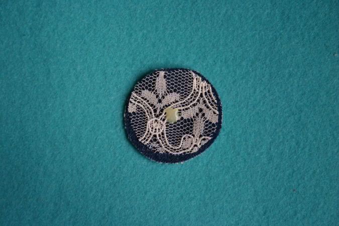 - после окончания работы, аккуратно вырезаем заготовку (края можно украсить жемчугом). Для красоты добавляем немного тканевой бахромы.