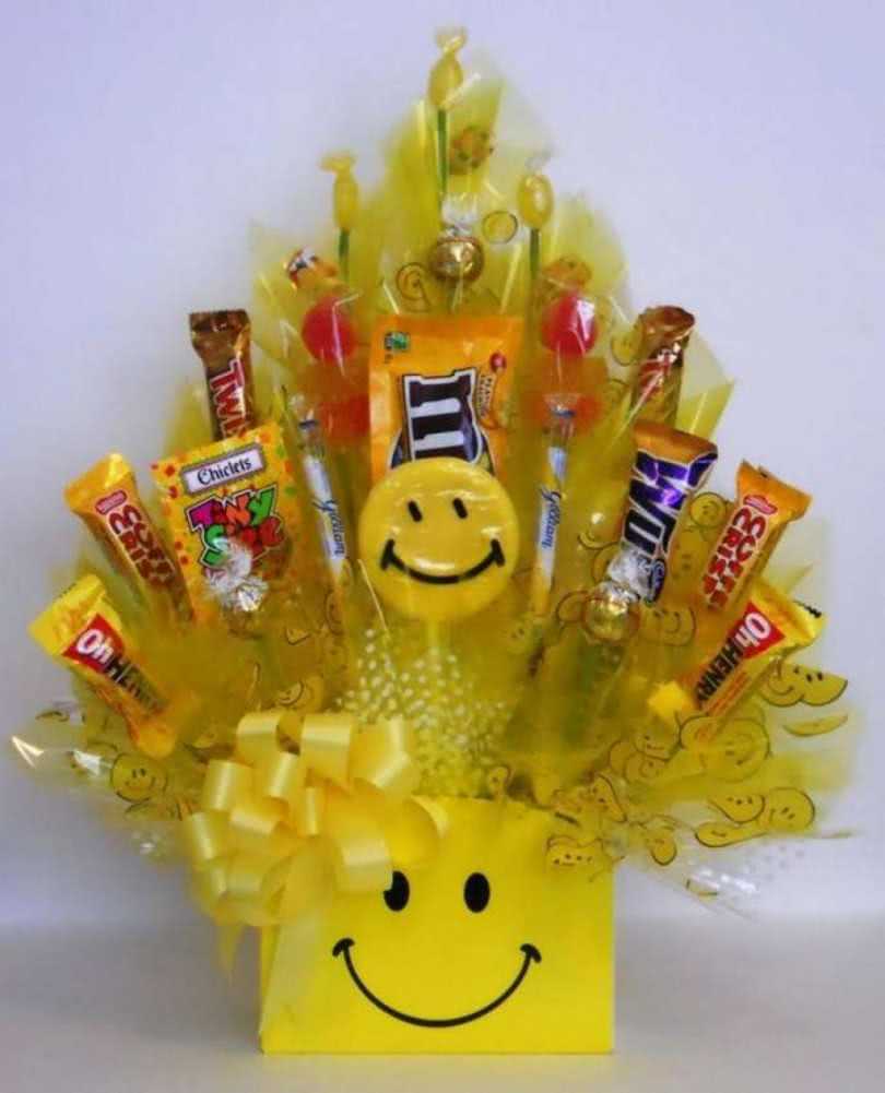 Букет из конфет станет отличным подарком к любому событию. Задумав выполнить композицию своими руками, выберите за образец понравившееся вам оформление, подготовьте все необходимые материалы, запаситесь терпением, вложите свою душу в процесс создания и у вас все обязательно получится!
