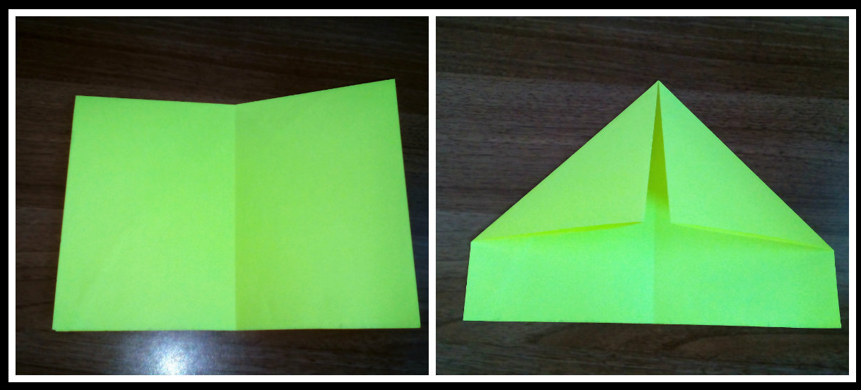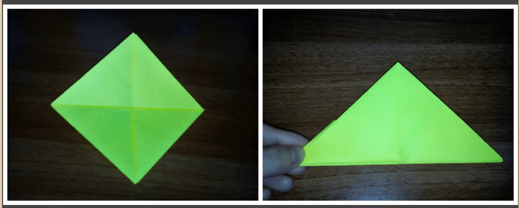 1. Берется квадратный листок бумаги. Он сворачивается пополам по диагонали один раз;