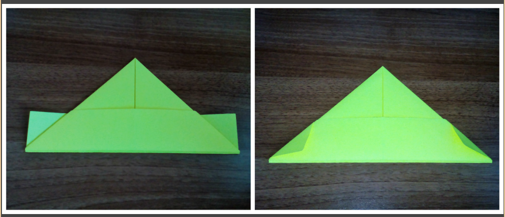 - Переворачиваем поделку. Выступающий треугольник отгибаем вперед.