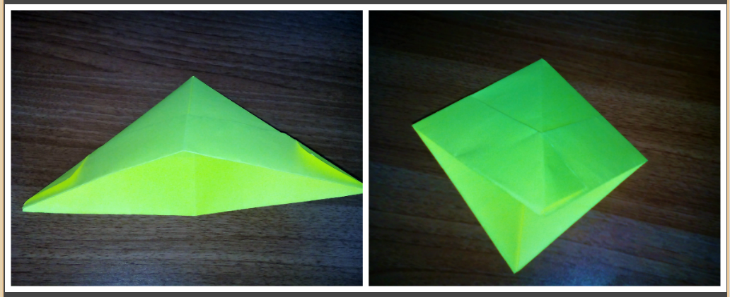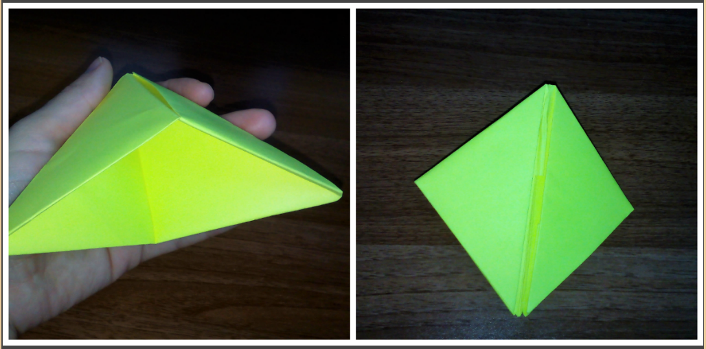 - снова переворачивают модель, загибают опять углы к середине квадрата;