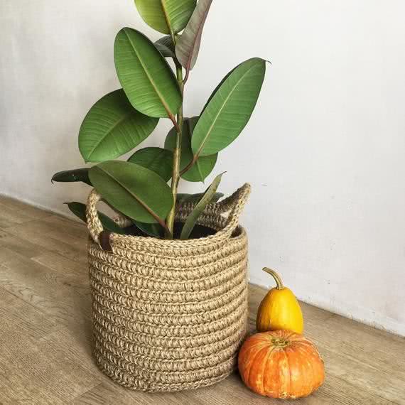 Даже если вы не умеете вязать крючком, это не так сложно, как кажется. Нравится такая модель корзинки? Она подходит для любого интерьера: от самого современного до аутентичного.