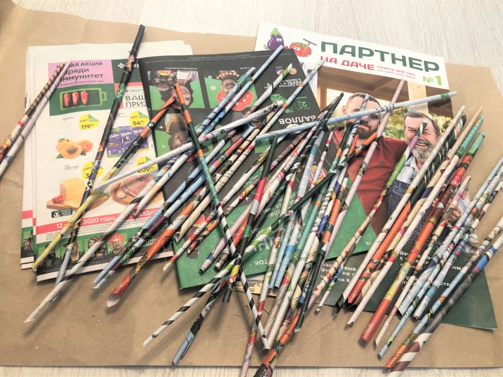 Сначала приготовим детали для будущего изделия – газетные трубочки.