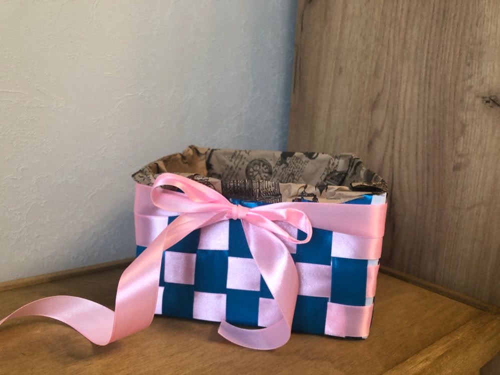 Если все нужные материалы есть под рукой, то на изготовление корзинки из лент уйдет всего 30 – 40 минут.