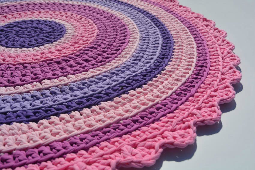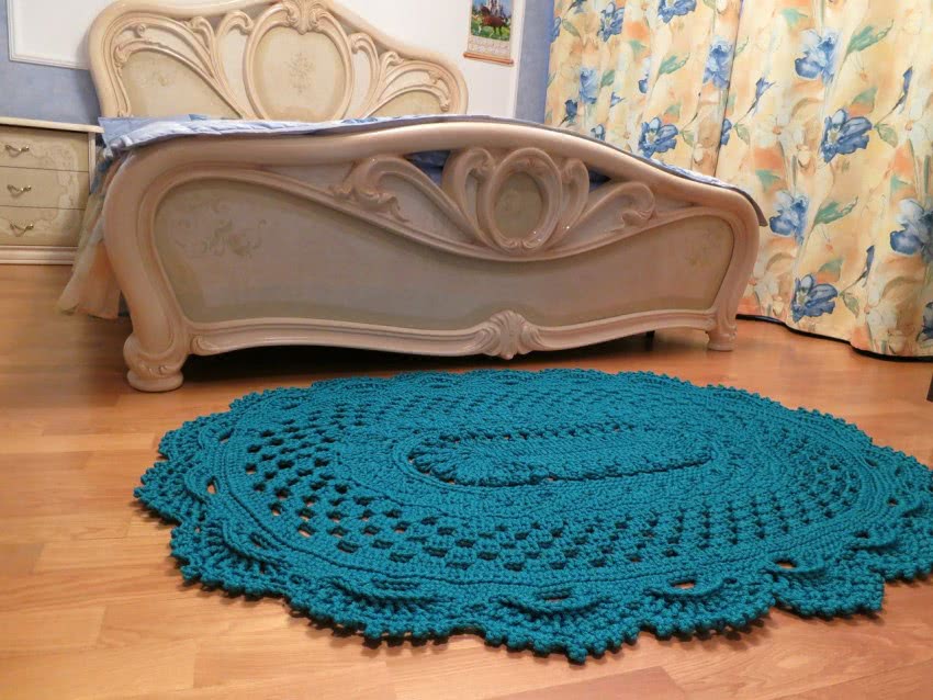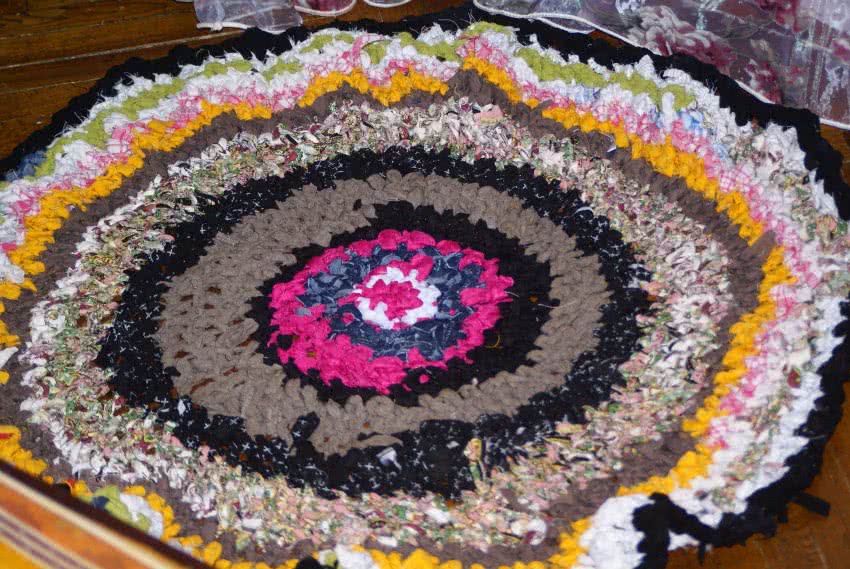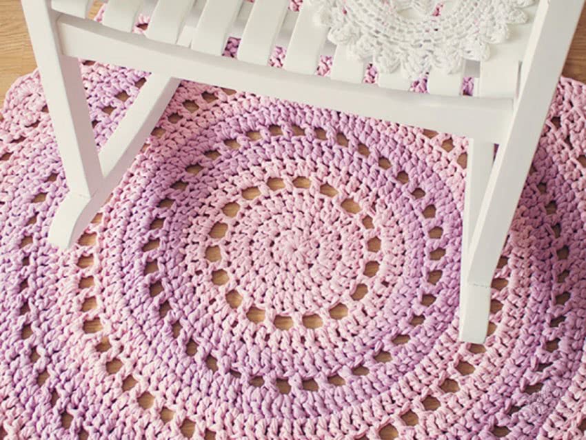 Для начала следует попробовать сделать простые круглые половички, которые начинаются от центра, постепенно увеличиваясь в диаметре по мере вывязывания рядов.