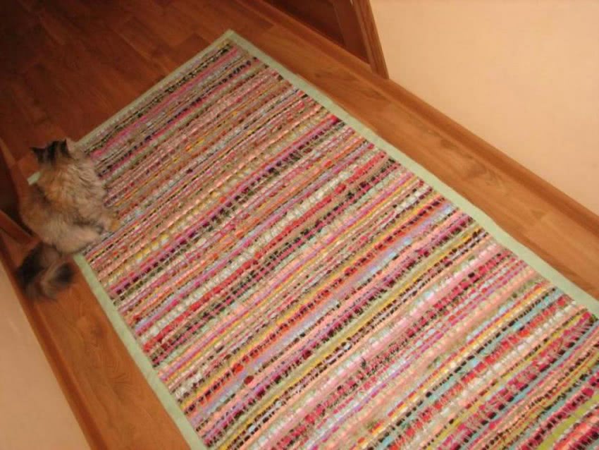 Тем, кто не владеет техникой вязания, можно предложить сплести коврик из старых вещей. Такие коврики отлично смотрятся в квартире и в доме. Отличная вещь при минимуме затрат.