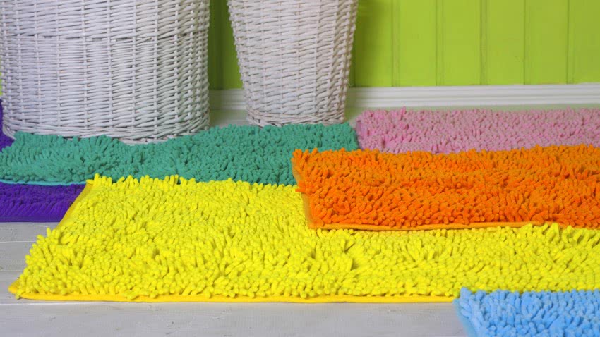 Если использовать помпоны из хлопка, микрофибры и других хорошо впитывающих материалов, можно такой коврик положить в ванной. Он очень мягкий и приятный. Из небольших по размеру помпонов, но плотно уложенных, можно собрать круглый, овальный, в виде цветка, зверюшки или любой другой формы.