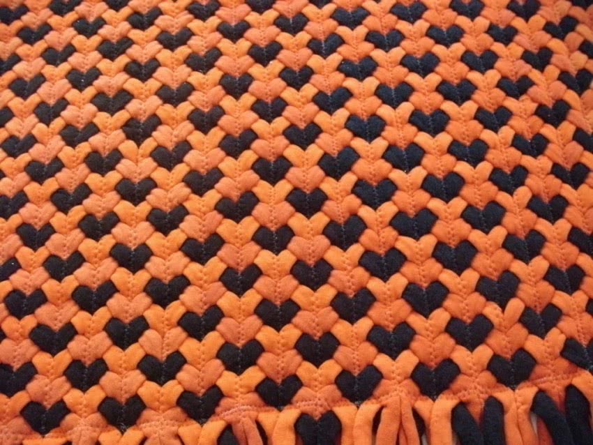 Начинаем пришивать ковёр к подложке-полотенцу. Пришить необходимо так, чтобы полоски хорошо держались и не съезжали в разные стороны.