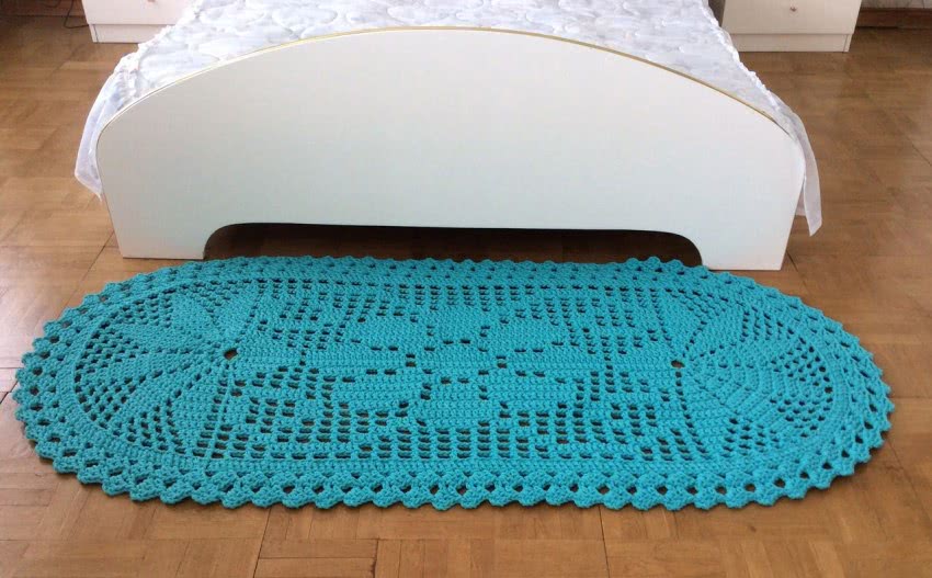 Ковры, как уже сказано, вяжут крючком. Это в общем-то не проще, чем вязание спицами, только свойства готовых изделий несколько различаются. Схем ковриков для вязания крючком в интернете имеется множество, но начинающим, чтобы хоть разобраться в условных обозначениях петель и операций, пришлось бы усвоить слишком большой объем обучающего материала. Поэтому начнем с азов.