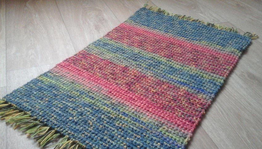 Желаете иметь дома мягкий коврик, на котором приятно поваляться перед телевизором или поиграть с ребёнком? Тогда поищите дома остатки ниток. Если хозяйка увлекается вязанием, то обычно всегда остаются небольшие моточки, которые жалко выкинуть, и они годами хранятся в какой-нибудь коробке.