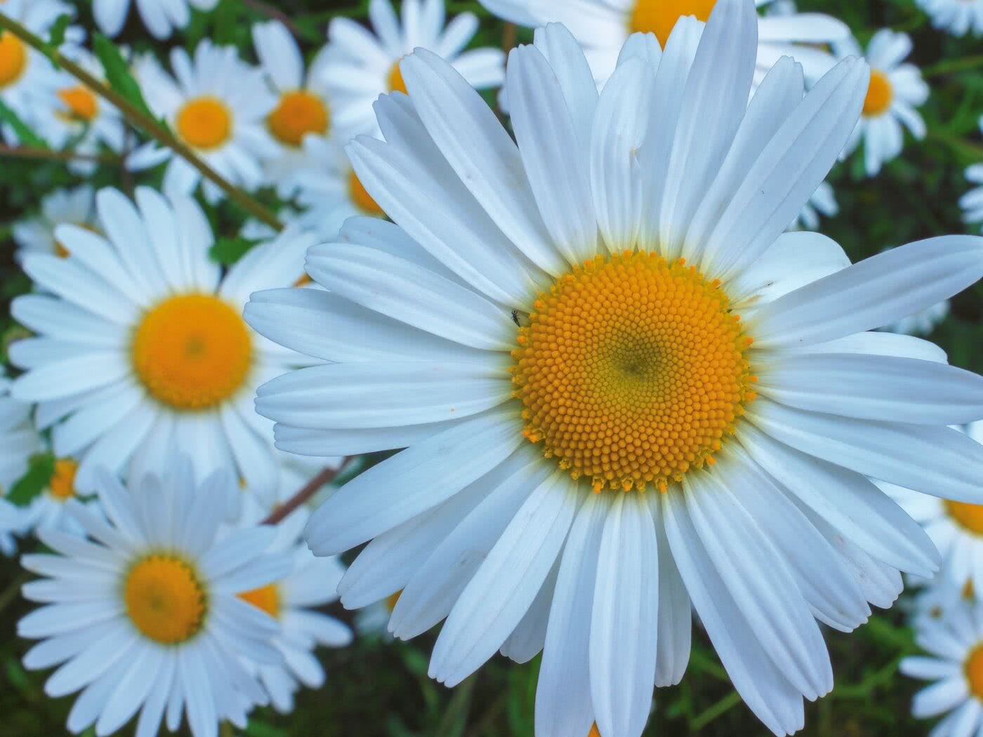 В саду ромашки очень естественно и нарядно смотрятся на фоне хвойников и декоративно-лиственных кустарников, прекрасно гармонируя с другими цветами. Особенно удачным будет сочетание с колокольчиками, васильками и огненно-красными маками — настоящее ситцевое покрывало!