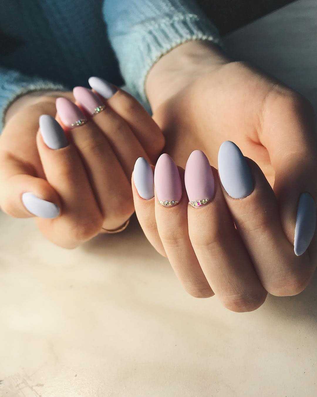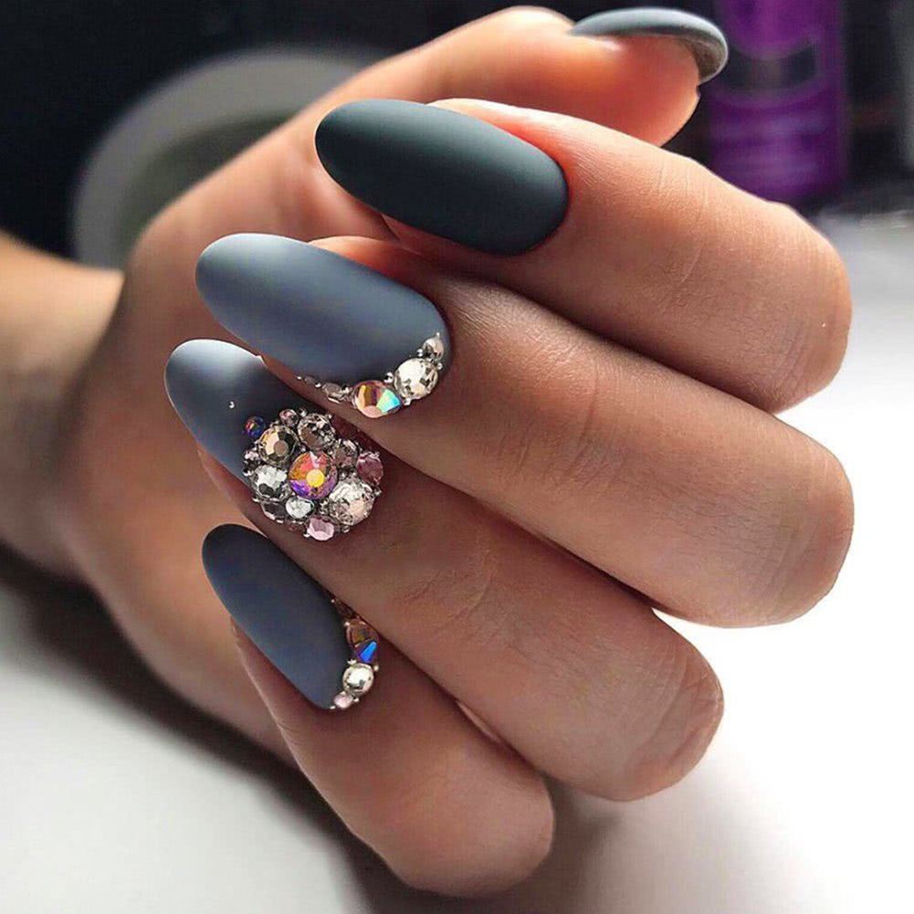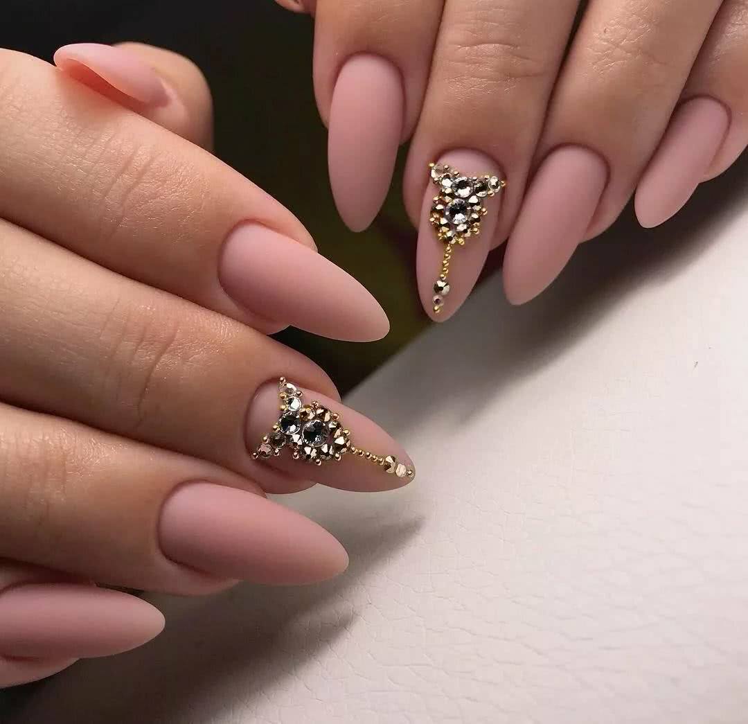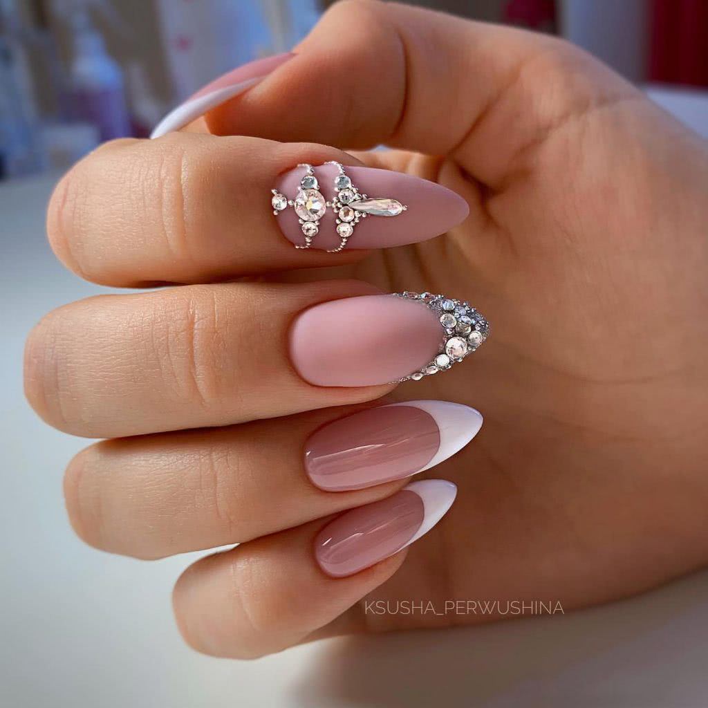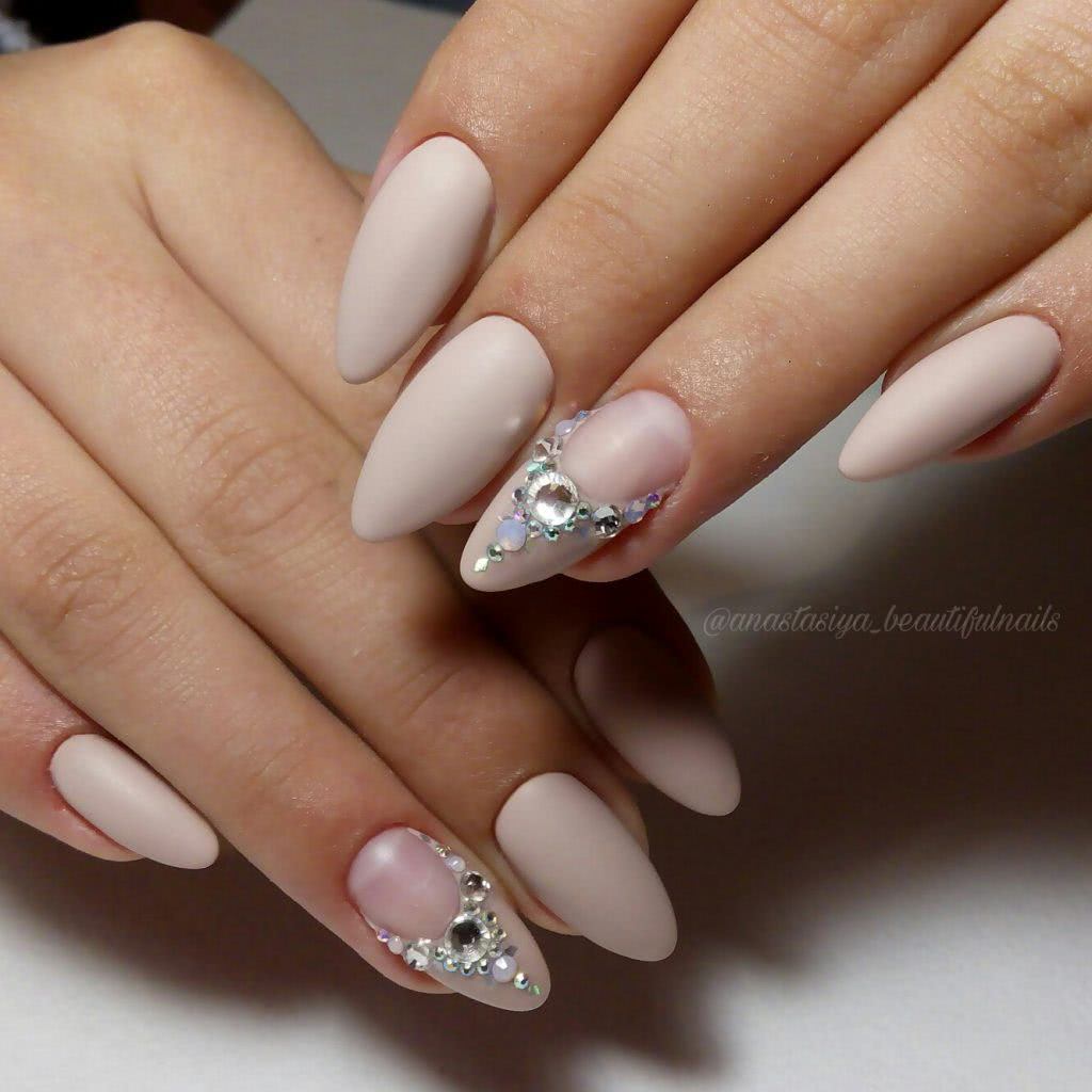 #5 Матовый маникюр на острые ногти со стразами