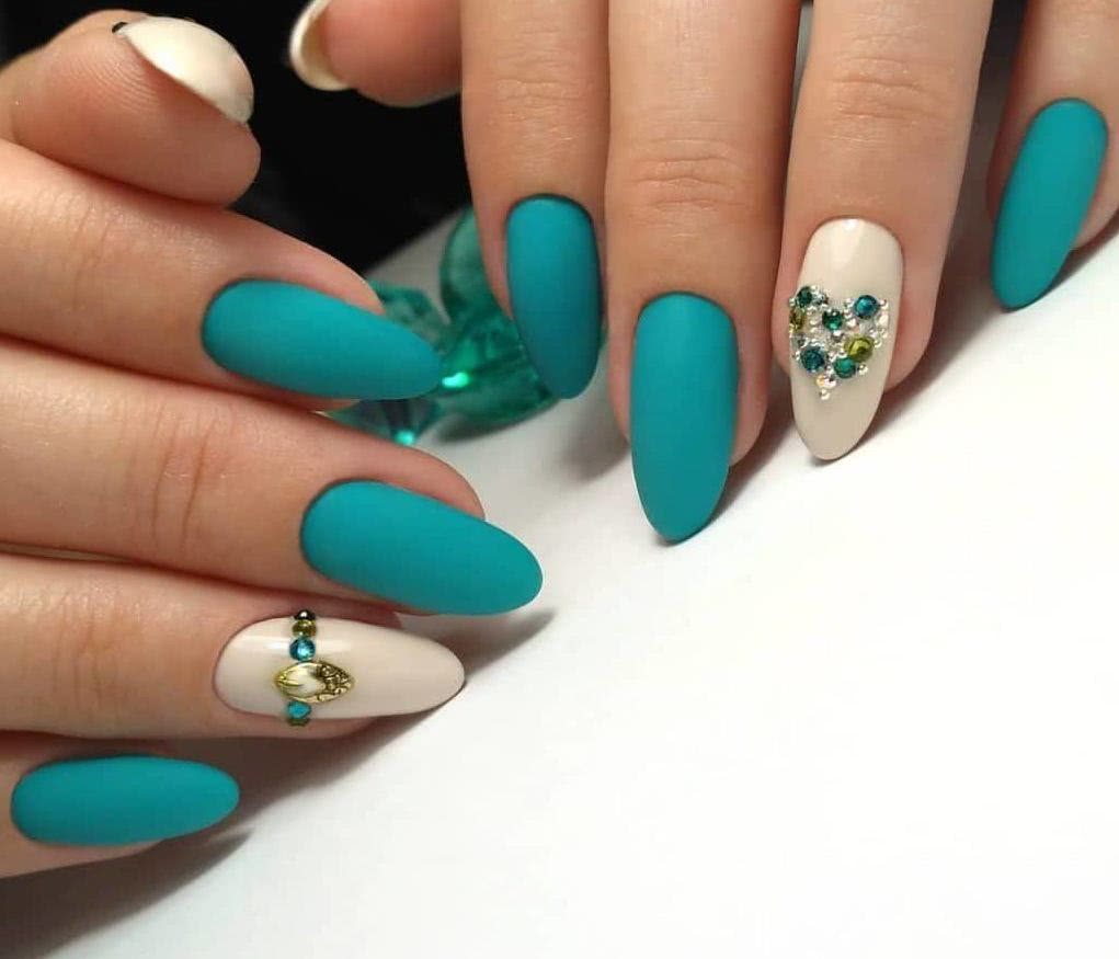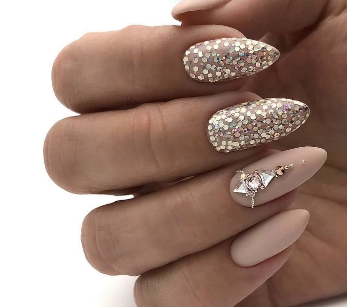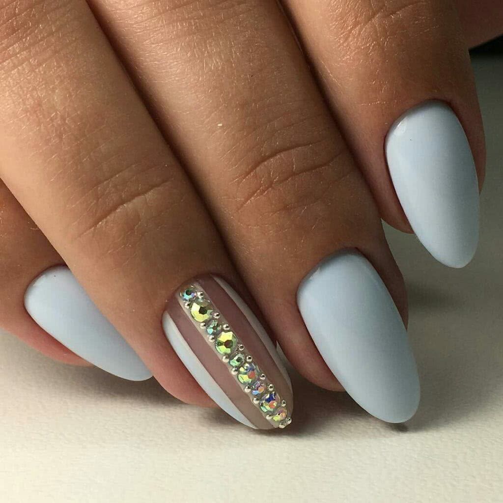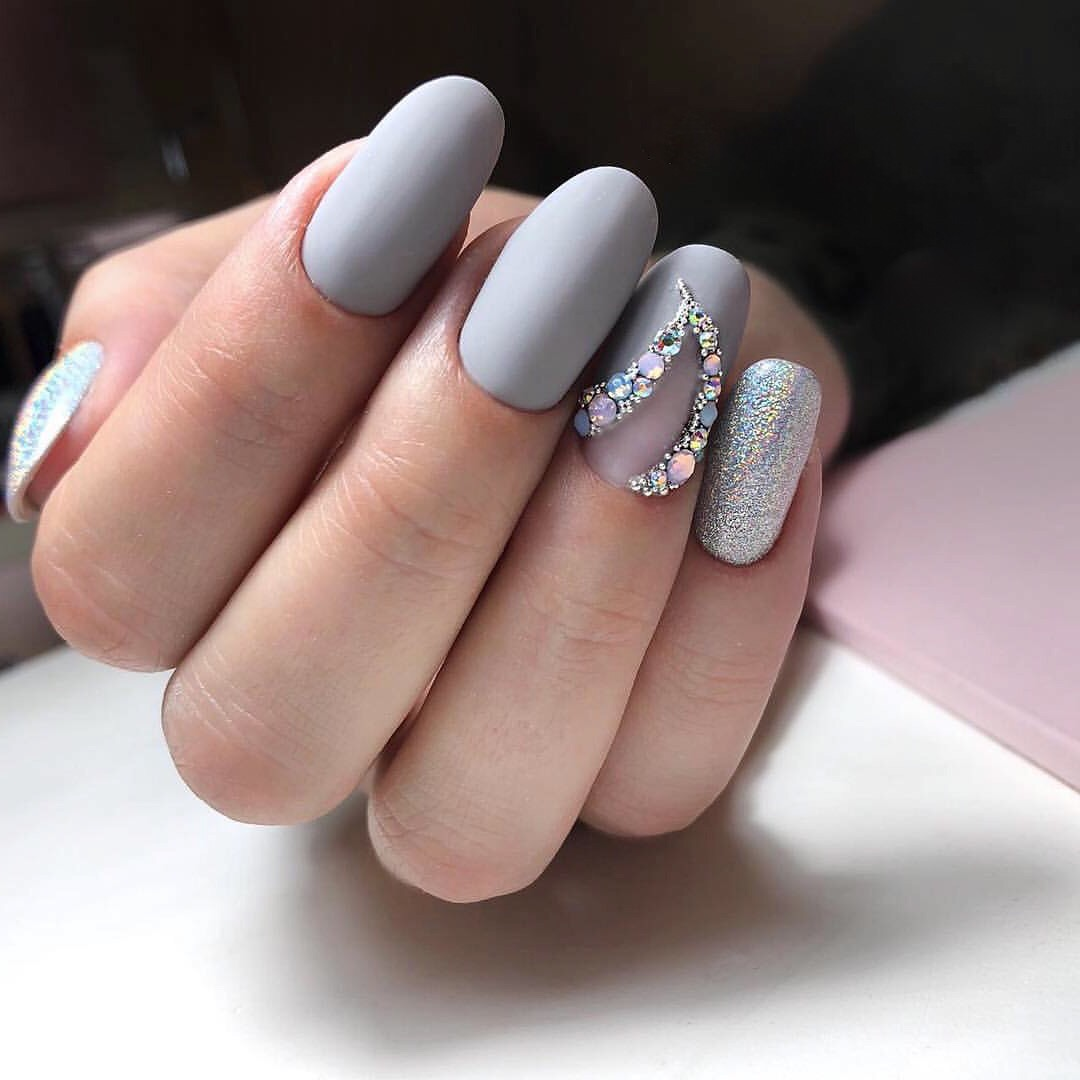 #5 Матовый маникюр на острые ногти со стразами
