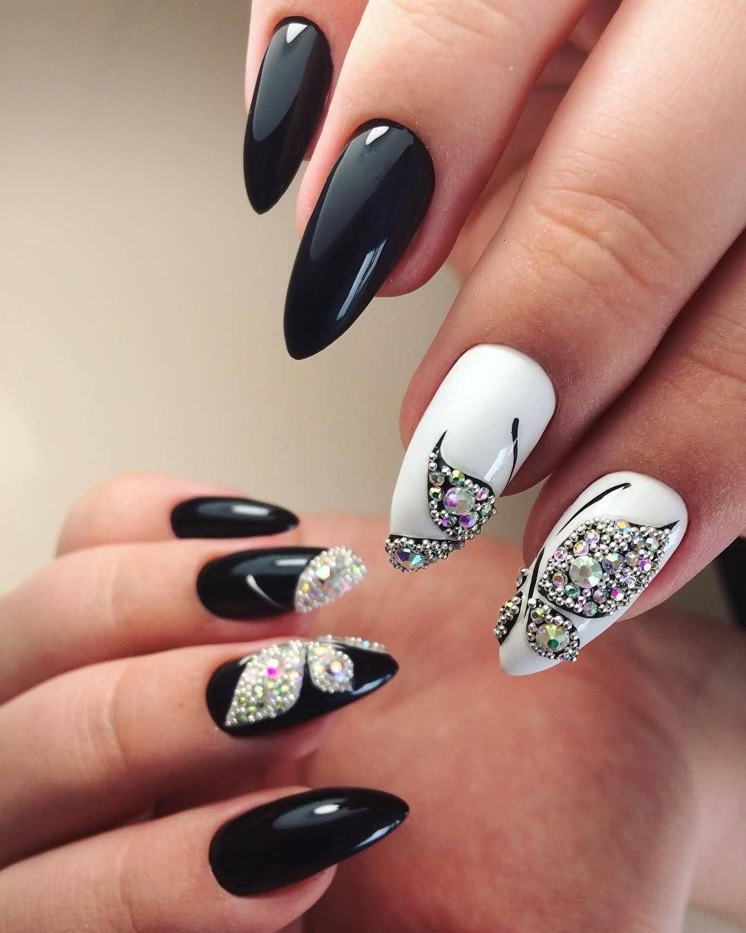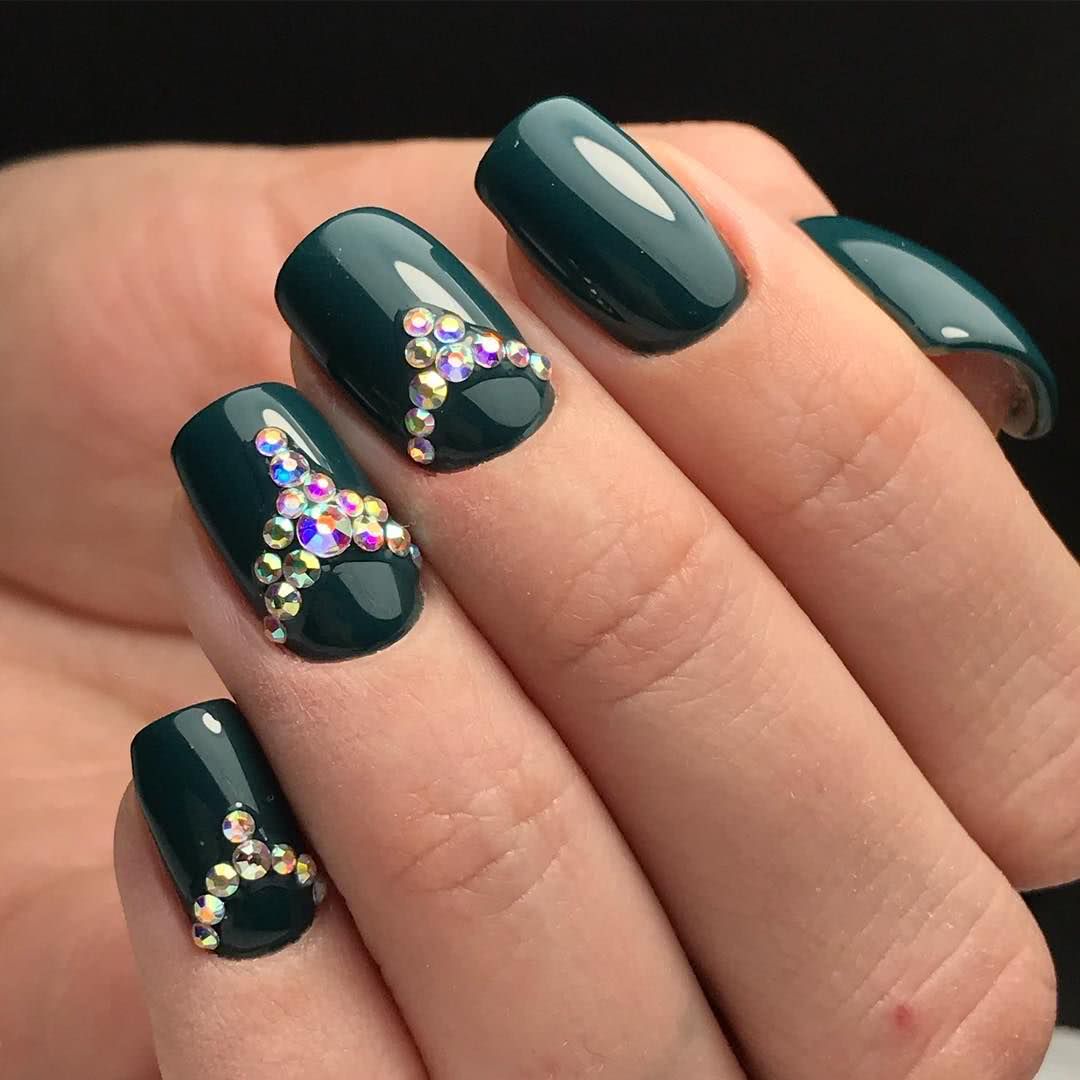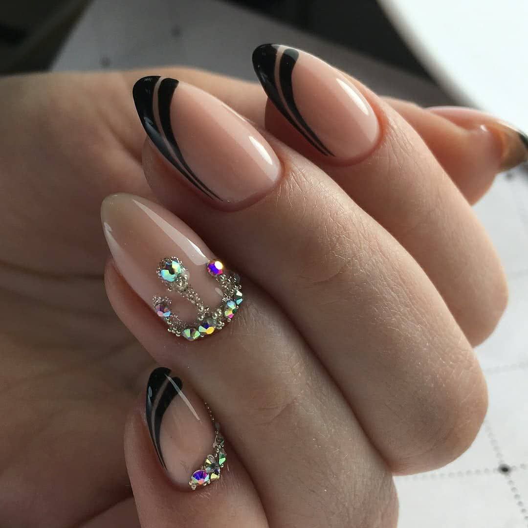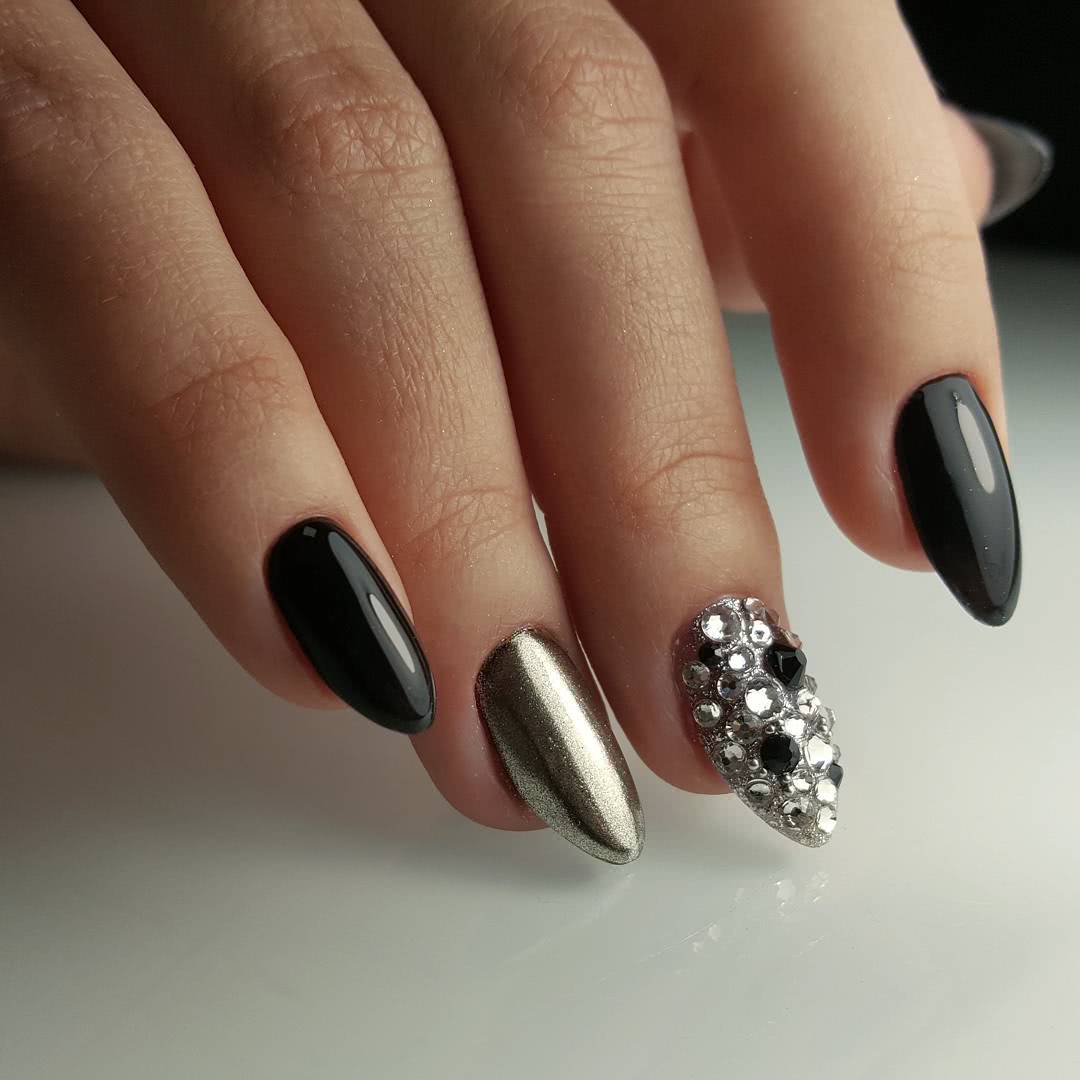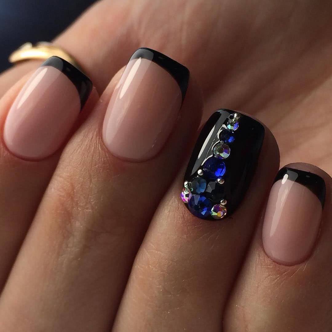 Маникюр черные ногти со стразами 2020: эффектный дизайн на каждый день