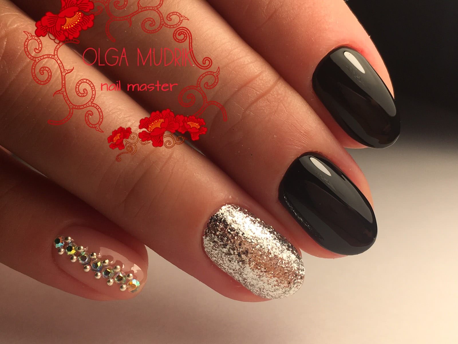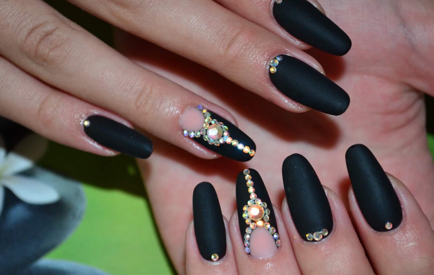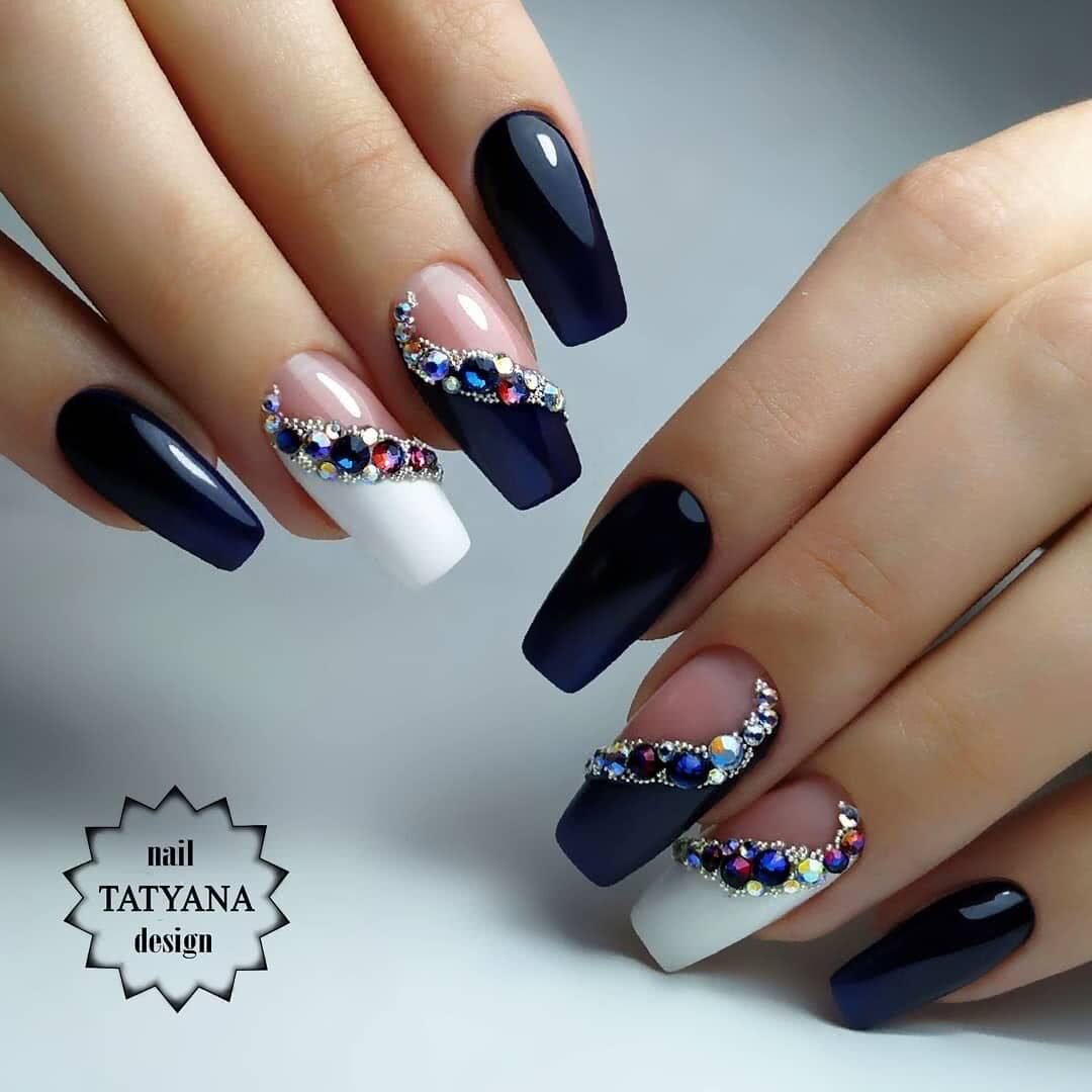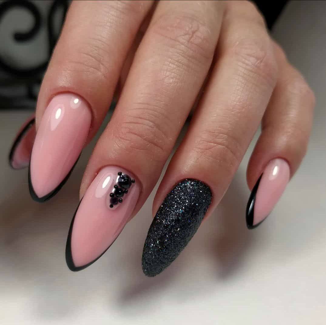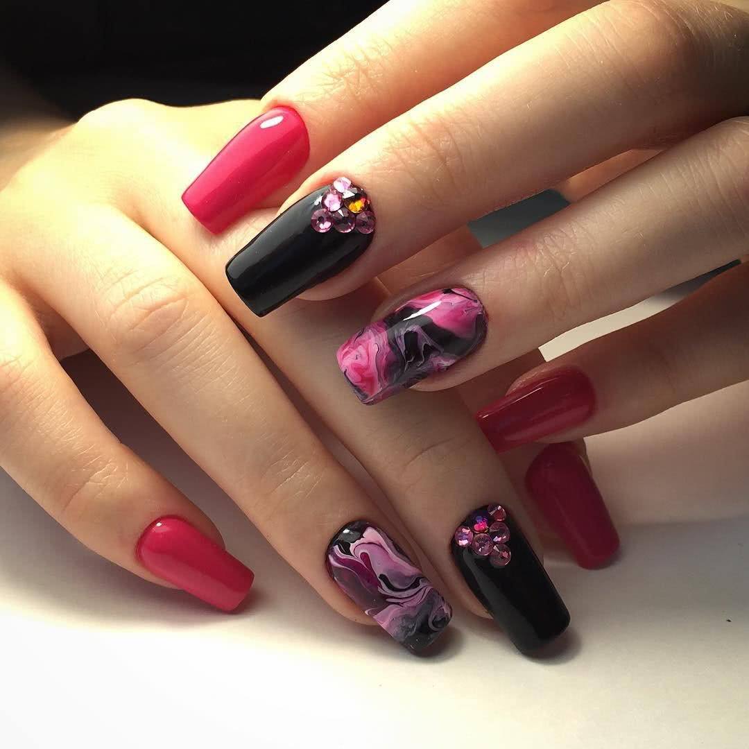 Маникюр черные ногти со стразами 2020: эффектный дизайн на каждый день