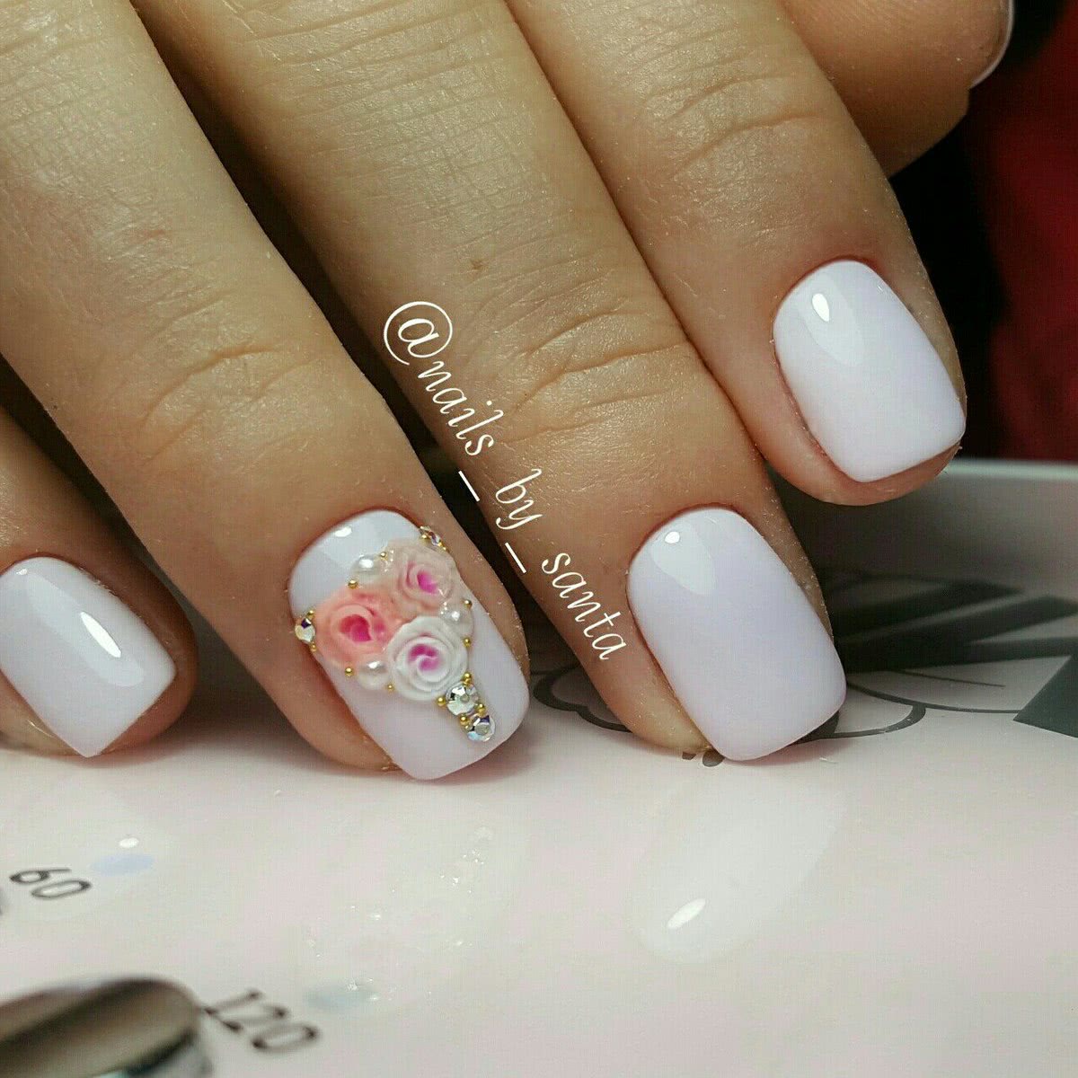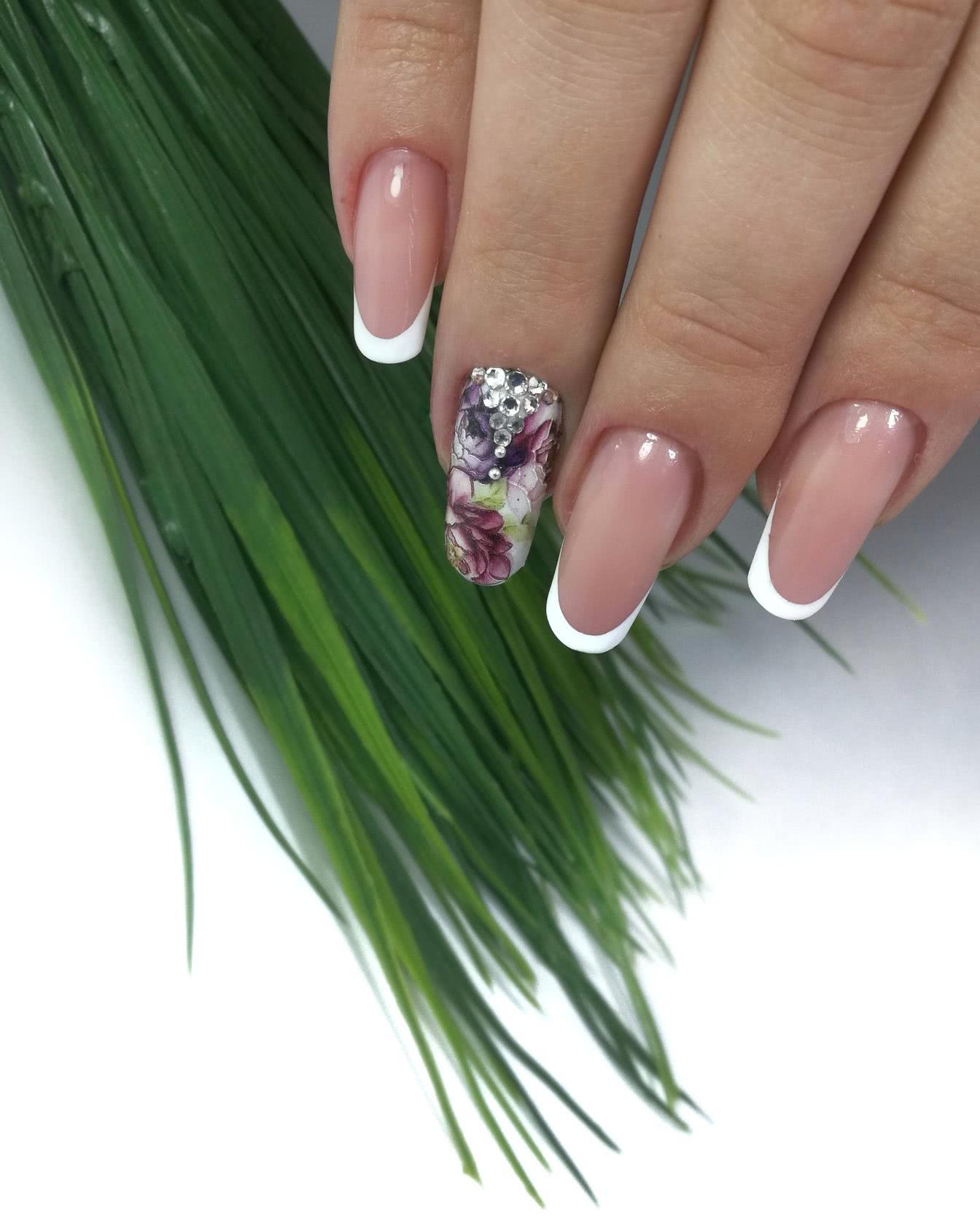 Маникюр 2021: цветочный рисунок со стразами