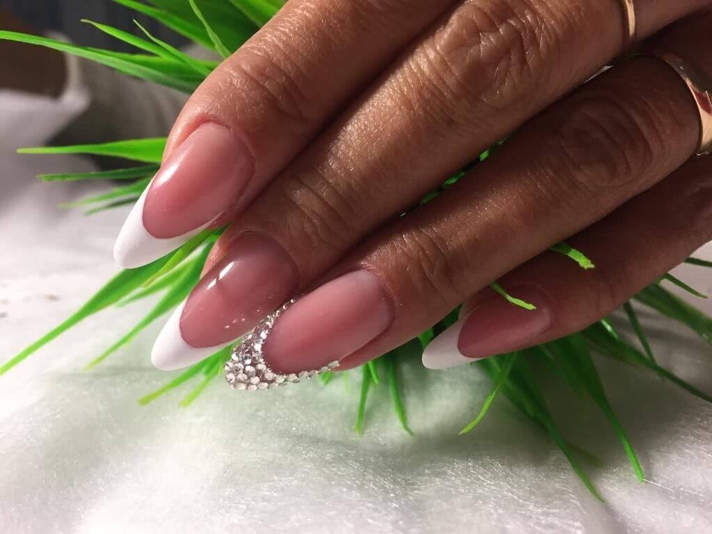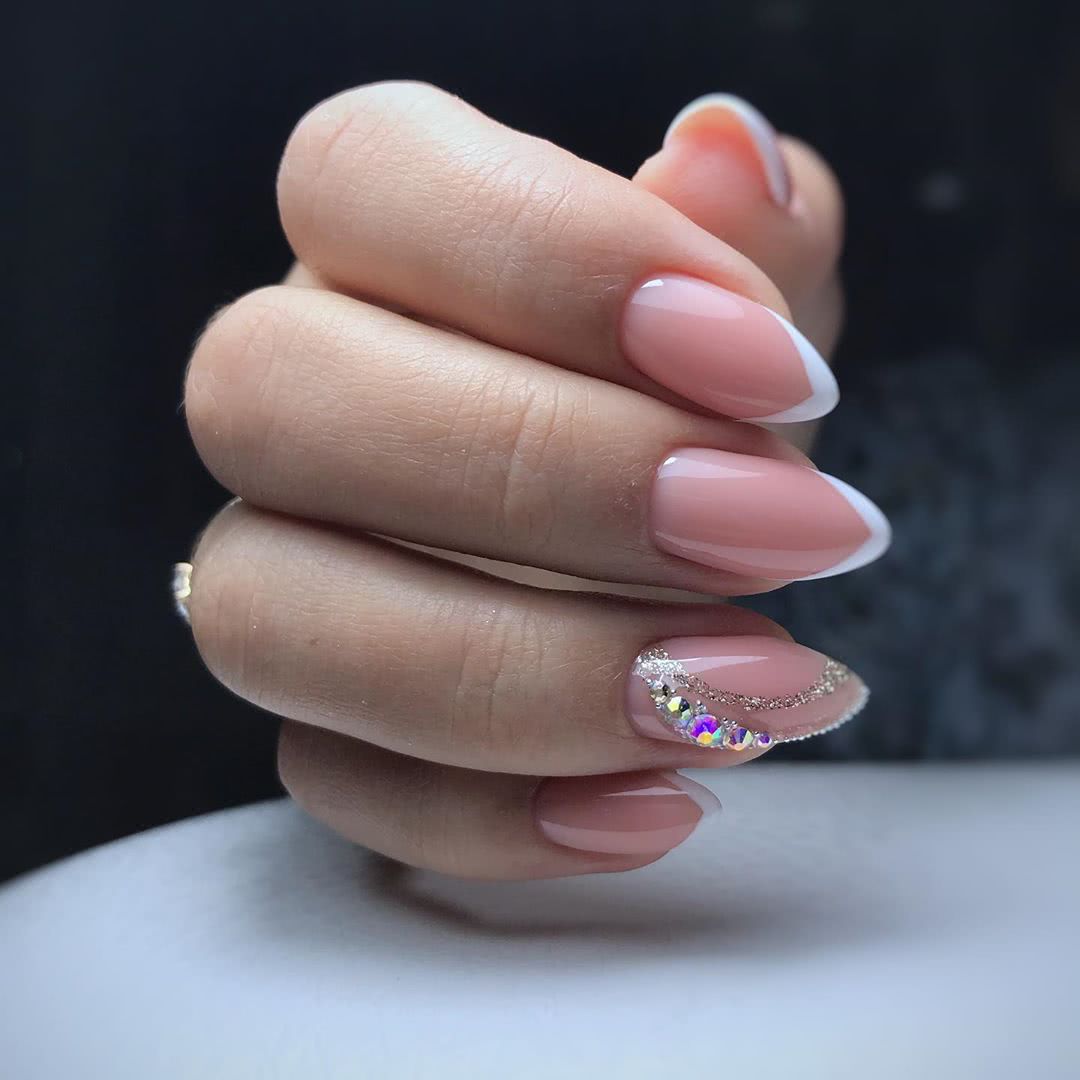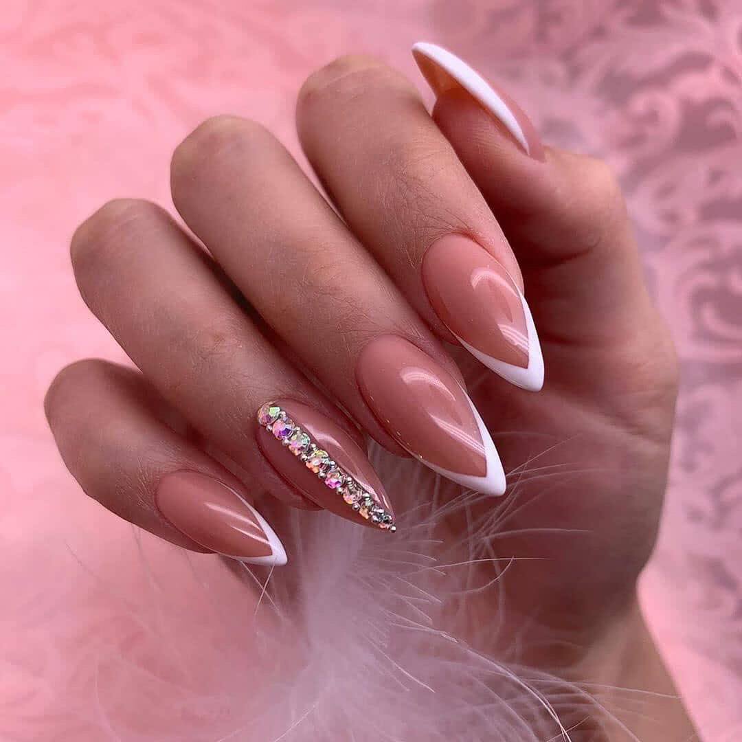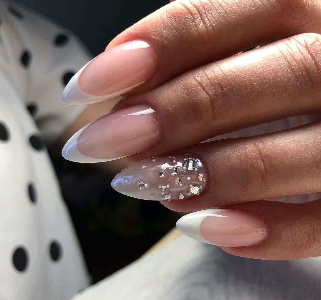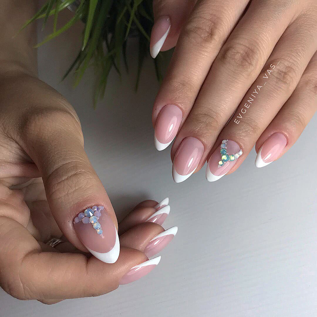 #4 Острый французский маникюр со стразами