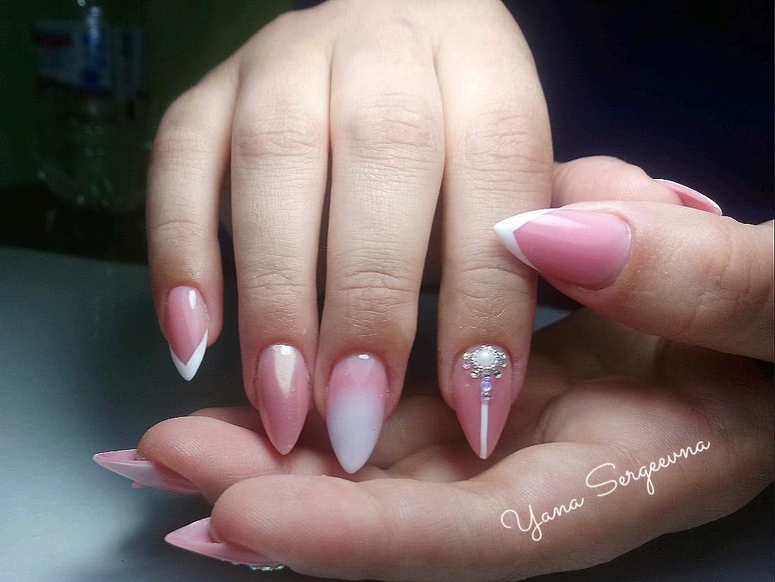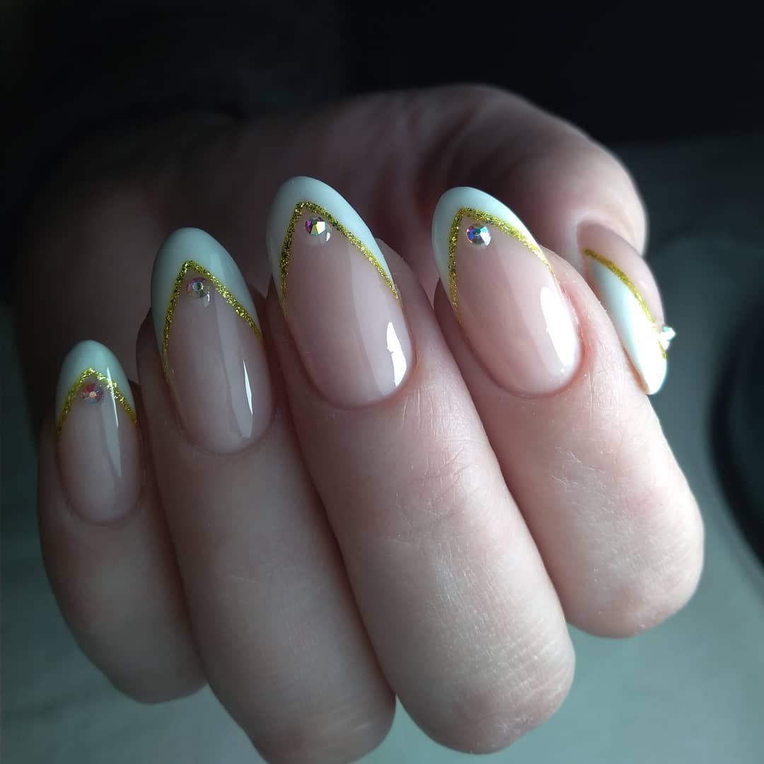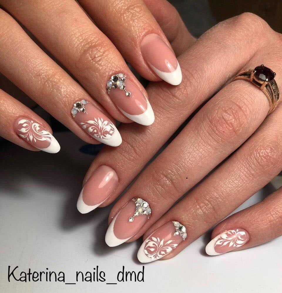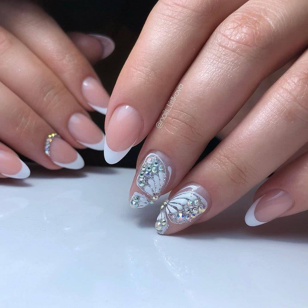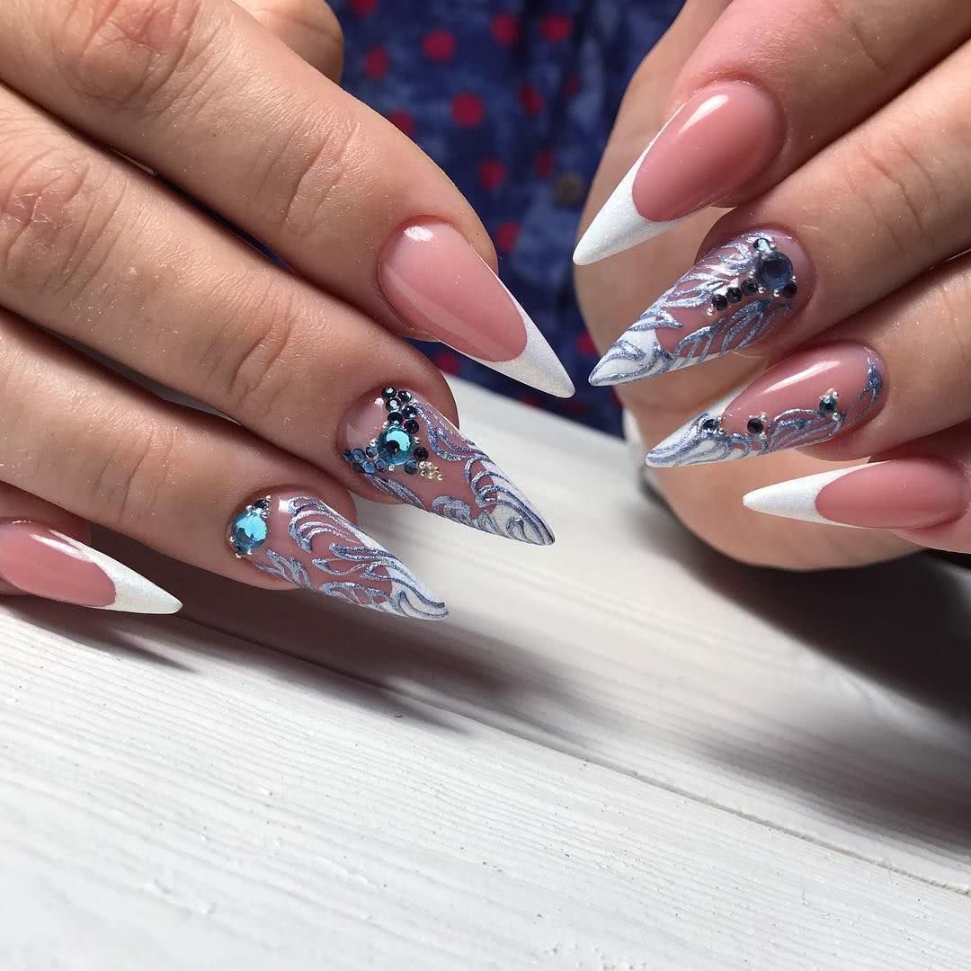 #4 Острый французский маникюр со стразами