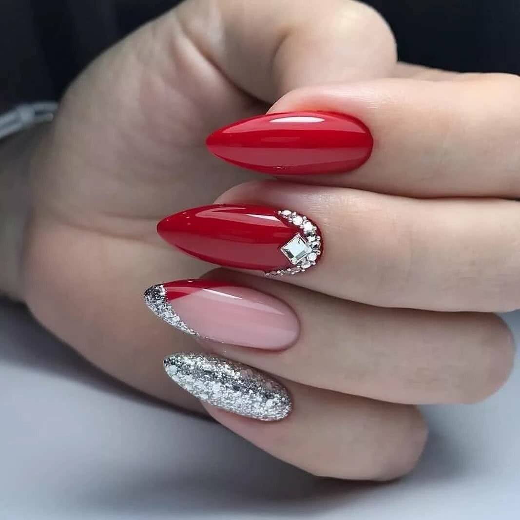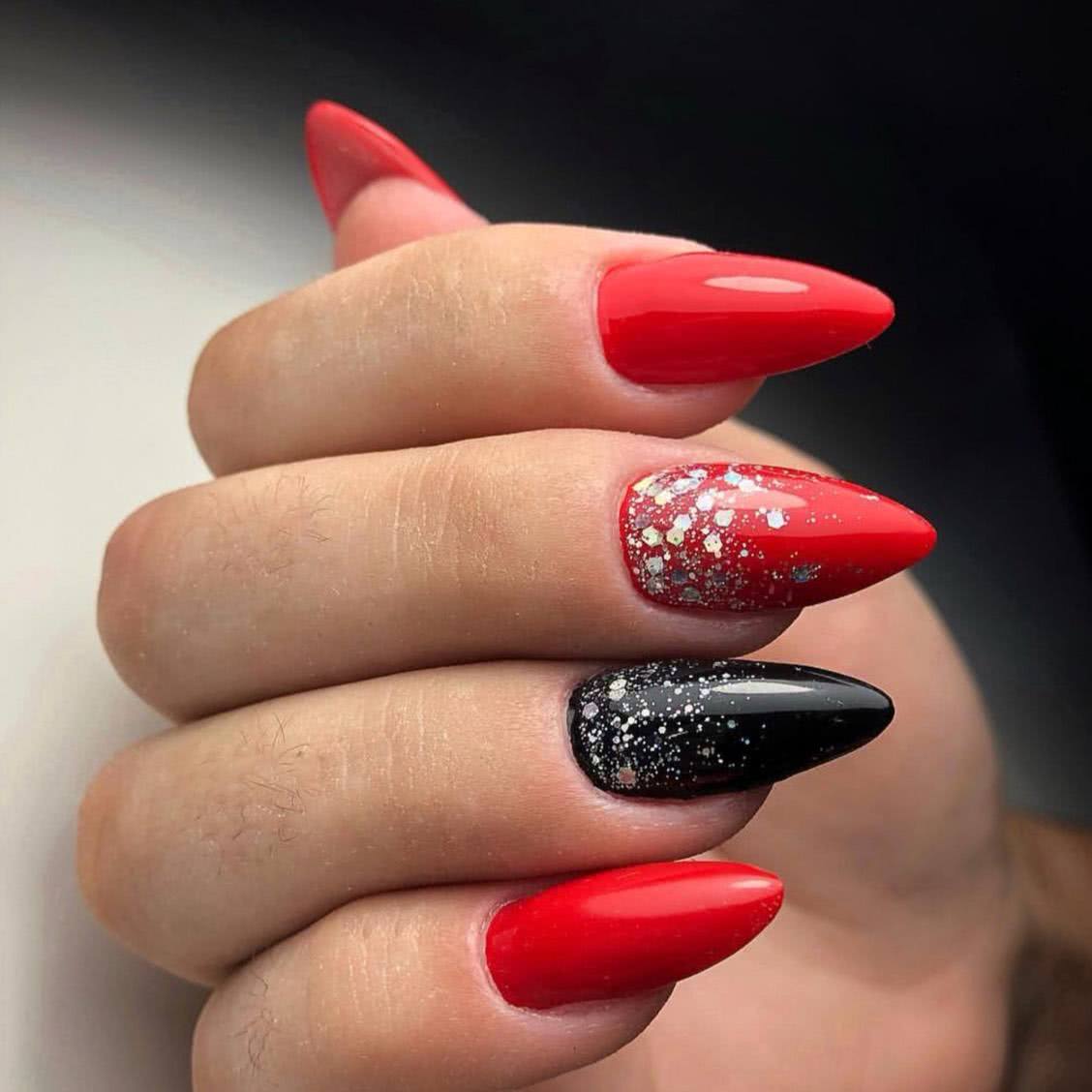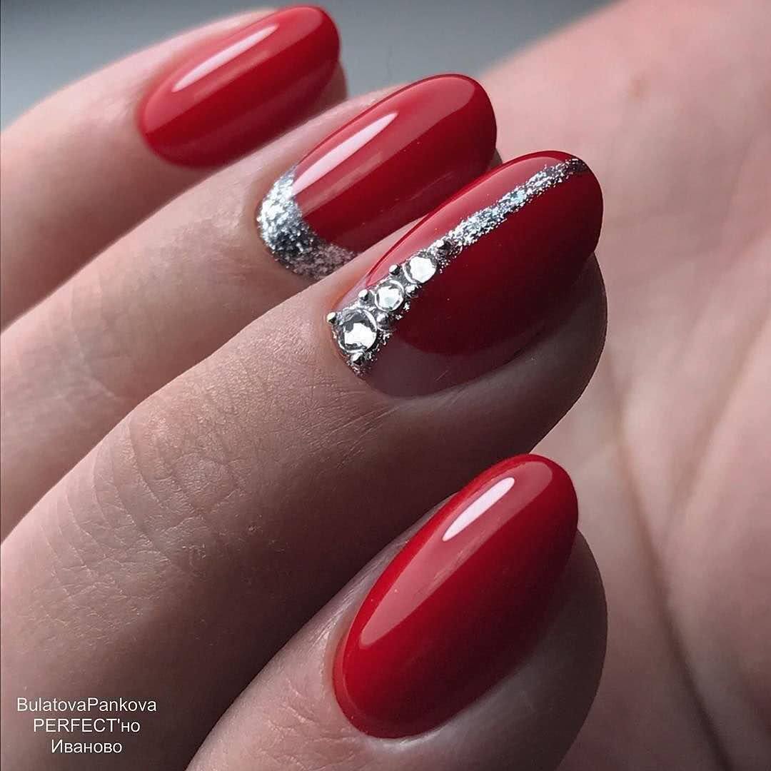 Красный маникюр с блестками 2020: идеи дизайна с блестящим декором