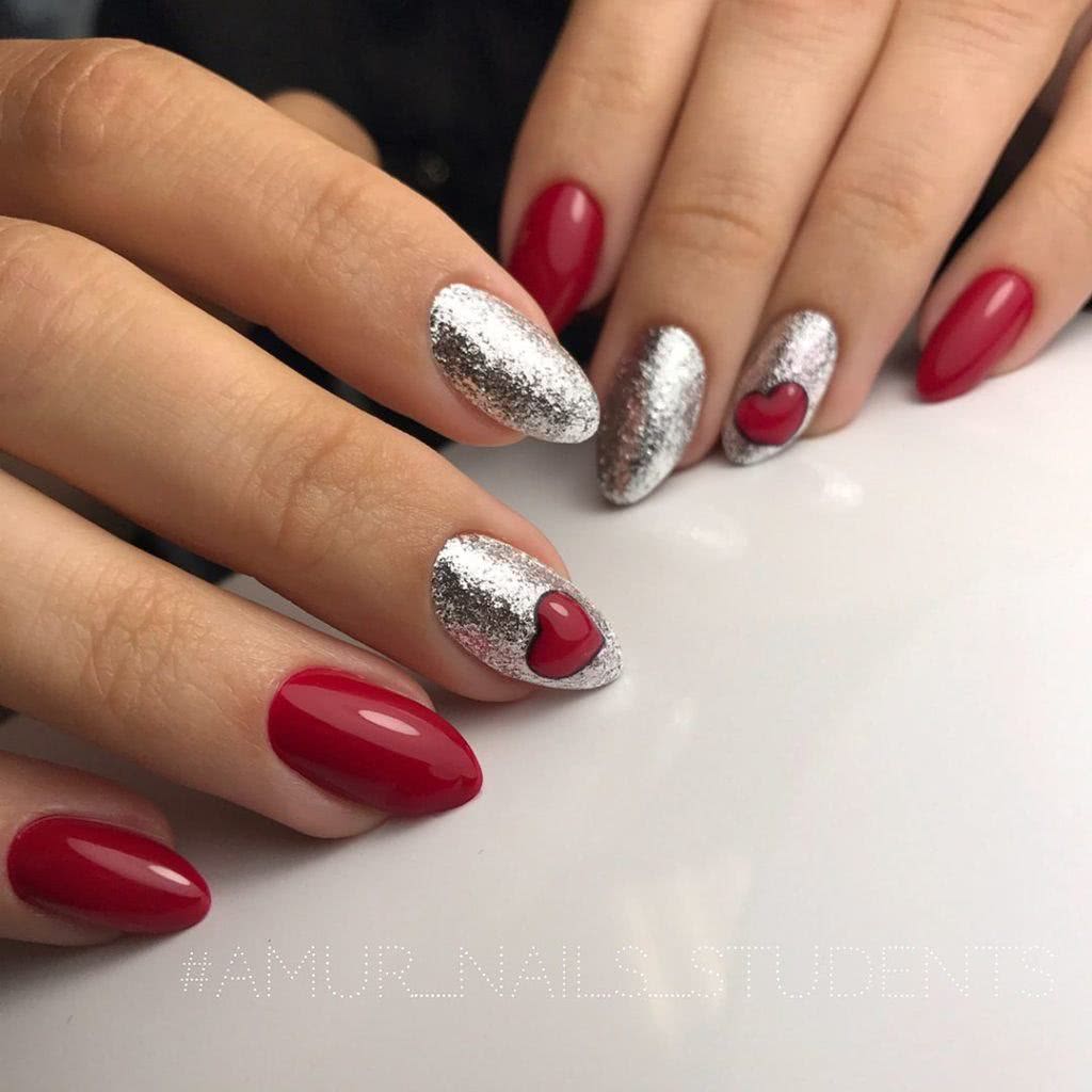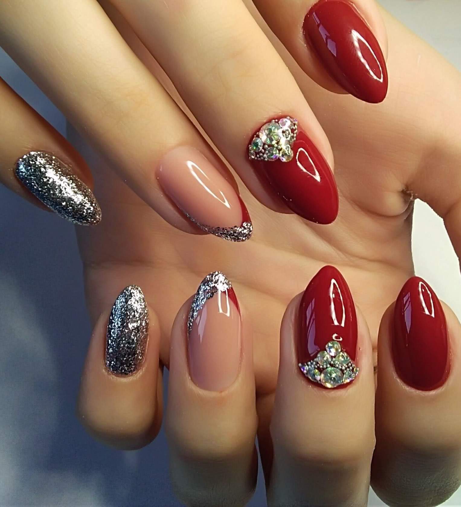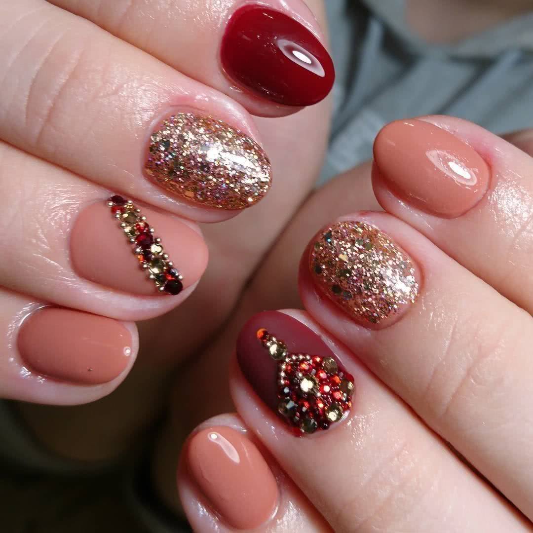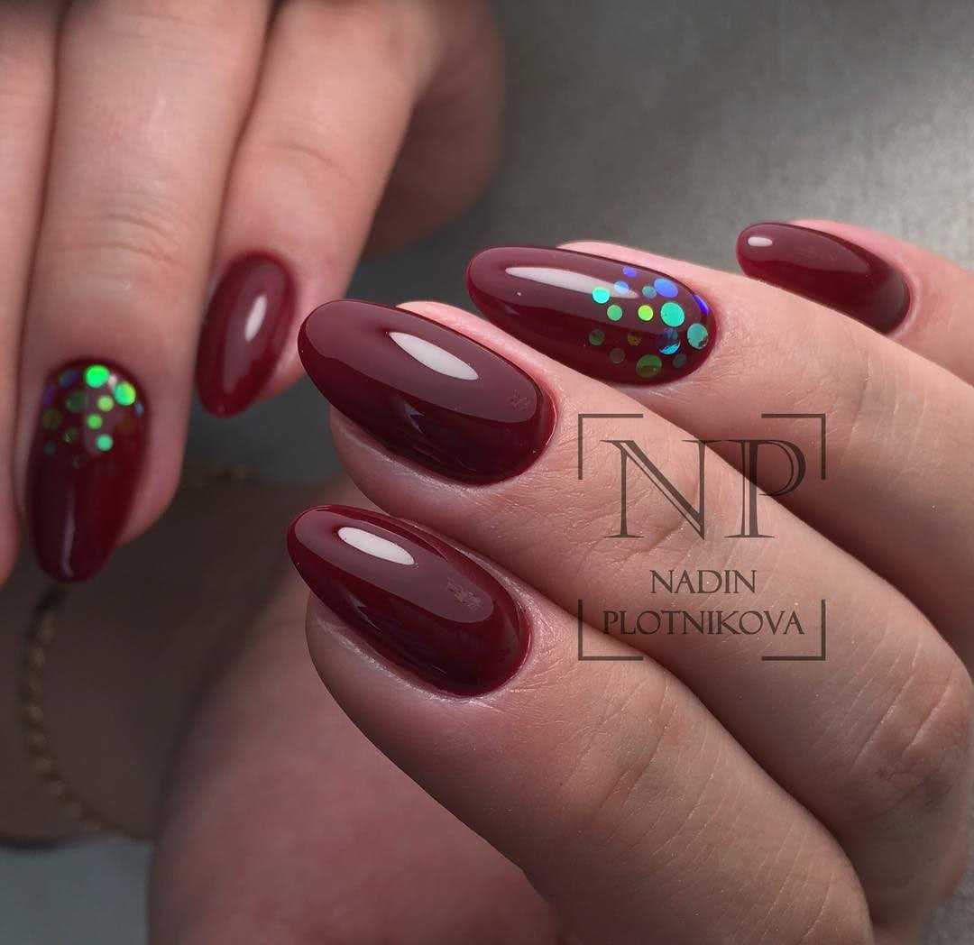 Красный маникюр с блестками 2020: идеи дизайна с блестящим декором