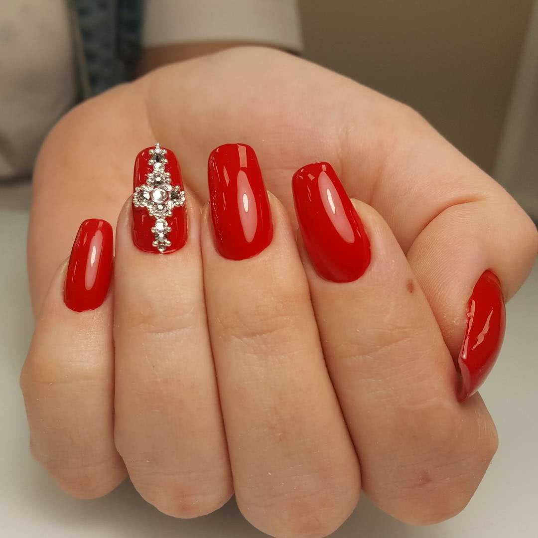 Красный маникюр со стразами 2019 – модные тенденции
