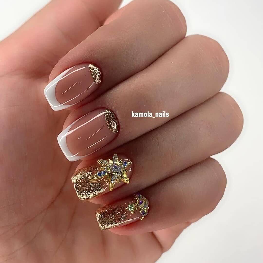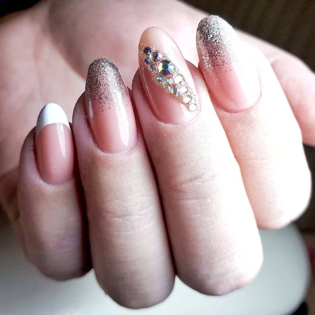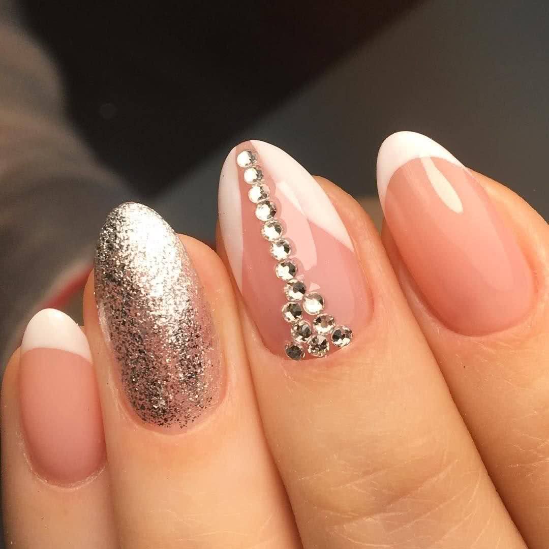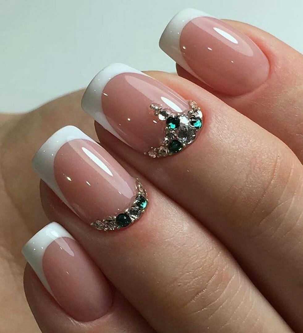 #1 Французский маникюр с блестками и стразами