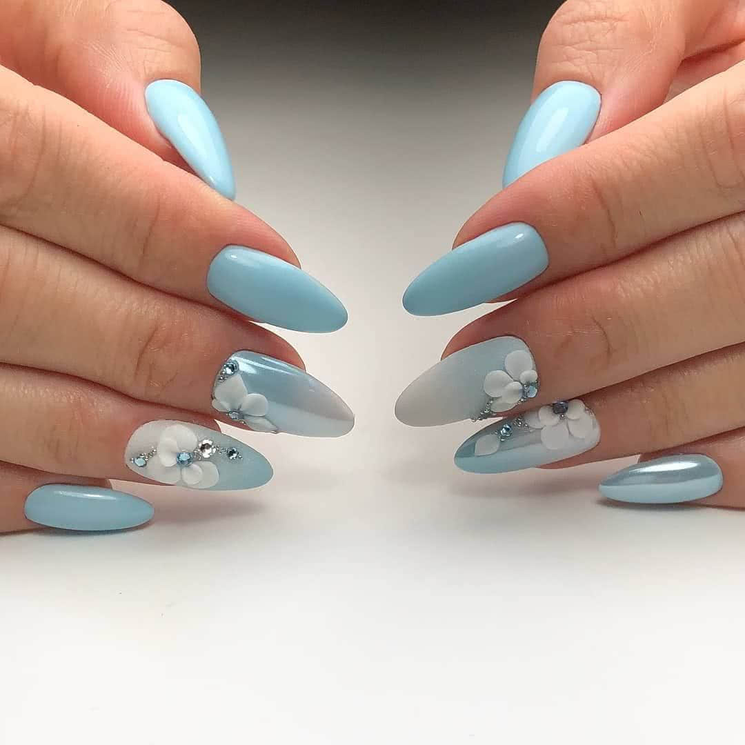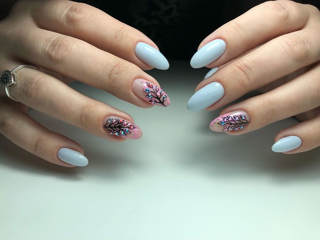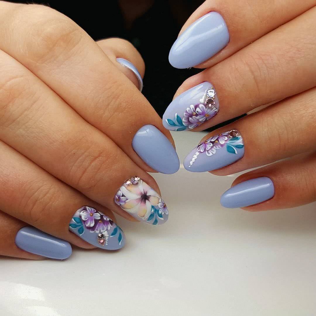 Когда речь идет об оформлении ноготков, многие представляют нежный оттенок лака с цветочным рисунком. Это не удивительно, ведь именно такой дизайн олицетворяет естественную женскую красоту и легкость. Поэтому цветы достаточно часто изображают на ноготках, чтобы сделать образ более женственным и романтичным. Ну а небольшое количестве страз добавят необходимой яркости, которая также нужна в современном маникюре.