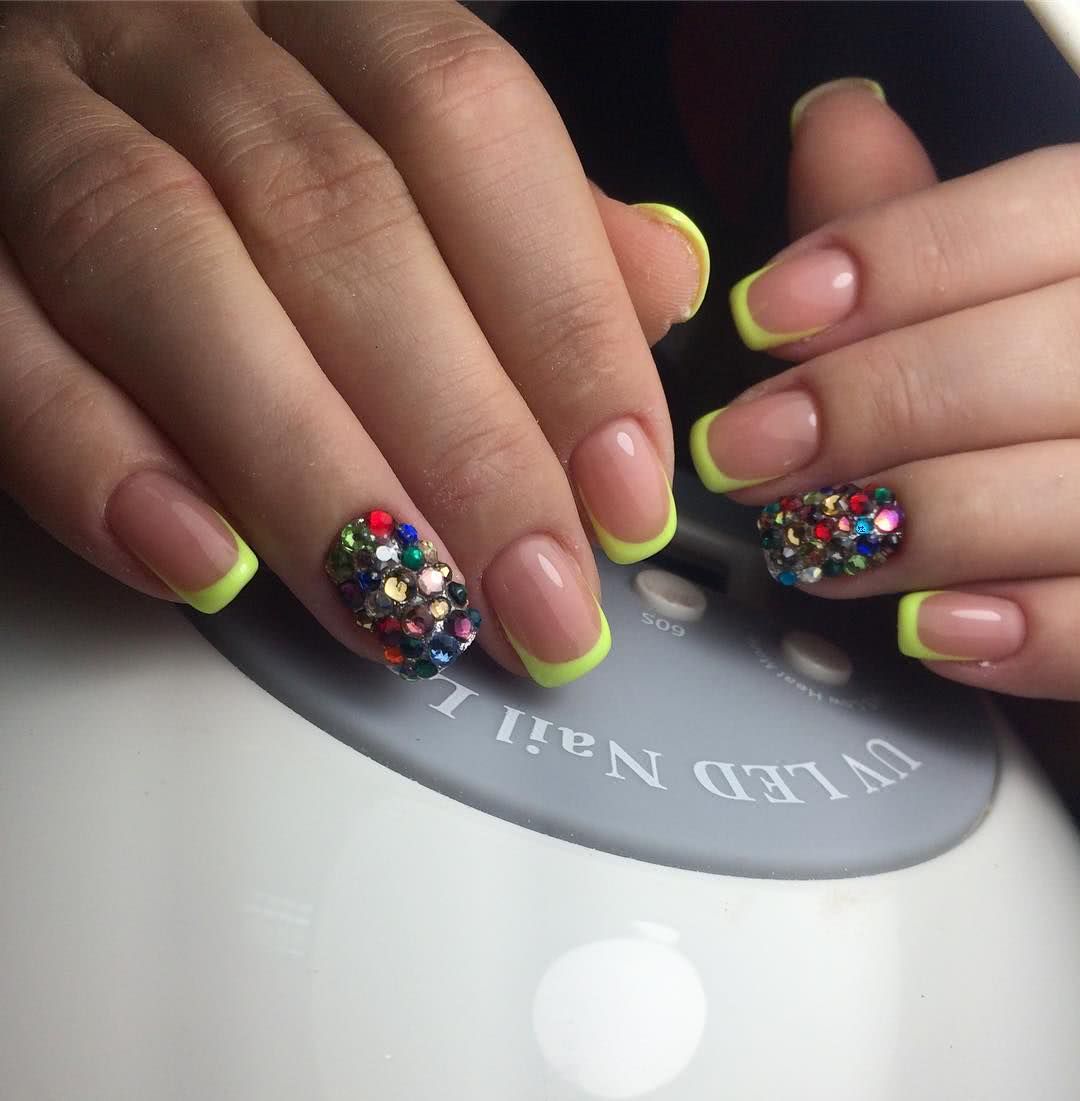 #3 Яркий маникюр с блестками и стразами