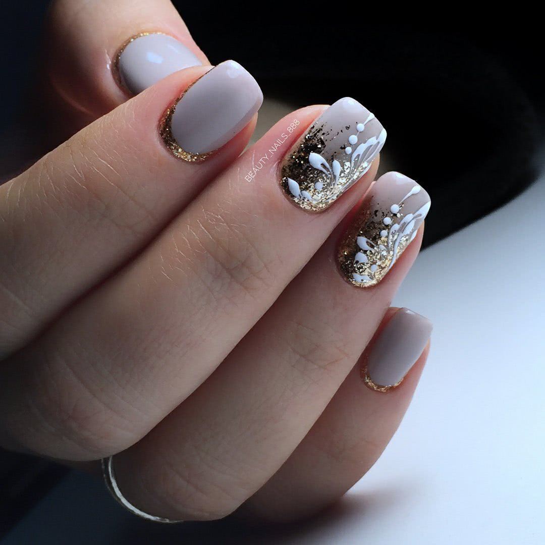 Блестящий декор – это огромное разнообразие материала, в котором присутствуют серебряные, золотые, радужные гранулы. Блестки – универсальный вариант для декора практически любых оттенков гель-лака. Серебро и золото отлично гармонируют с пастельными тонами, матовыми текстурами, насыщенными темными оттенками.