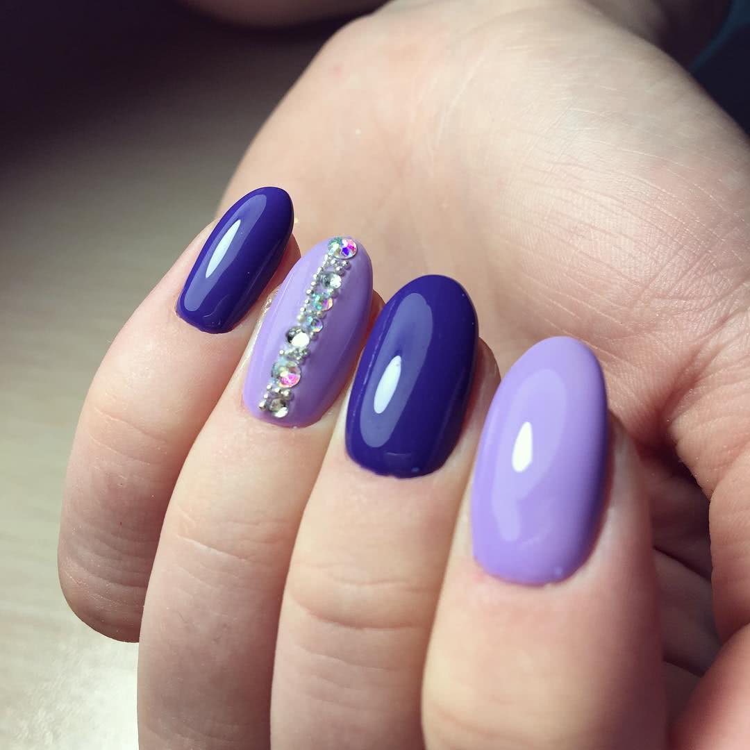 Несмотря на то, что такое оформление давно считается классикой и является беспроигрышным вариантом дизайна, многие барышни считают его немного сдержанным и простоватым. Ноготки в этом случае покрываются выбранным оттенком, а такие дополнения как рисунки либо узоры отсутствуют. Однако мы сегодня предлагаем модницам взглянуть на такой маникюр по-новому, и использовать в дизайне не только яркие лаки, которые являются основой предложенных сегодня идей, но и не останавливаться на одном цвете. К примеру, на правой руке покрываем ногтевые пластины одним определённым оттенком, а на другой комбинируем несколько вариантов. Акцентные ноготки обязательно украшаем полосками или несложным узором из страз и наслаждаемся результатом.