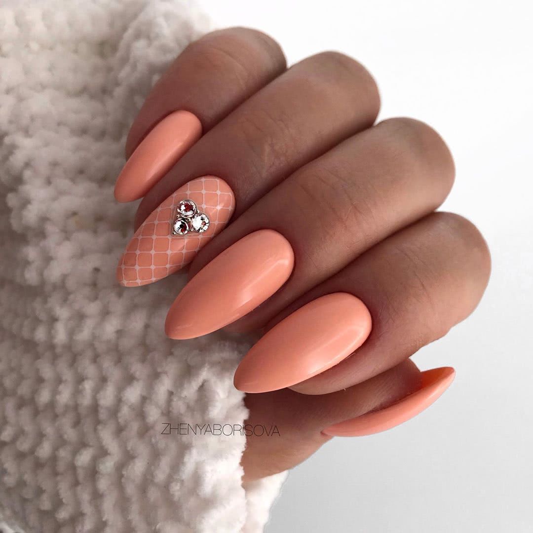 Монохромный дизайн ногтей имеет свою армию поклонниц и пользуется большой популярностью. Это могут быть яркие и насыщенные покрытия, нежные светлые или пастельные оттенки либо тёмные и глубокие тона. Стразы при этом могут подбираться в тон покрытию или контрастно отличаться. В этом случае всё зависит от желаемого в итоге результата. В большинстве случаев, декором украшают безымянный ноготок или располагают элементы на каждом пальце в виде аккуратного акцента в прикорневой зоне. Узоры в таком оформлении могут быть самыми разнообразными. Особенно красиво сочетаются с однотонным дизайном мелкие кристаллы pixie или бусины-икринки, покрывающие полностью один из ноготков.