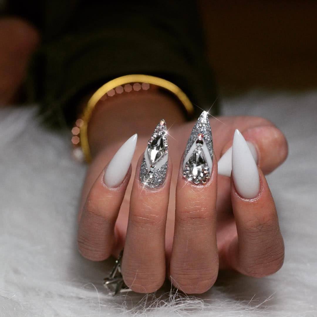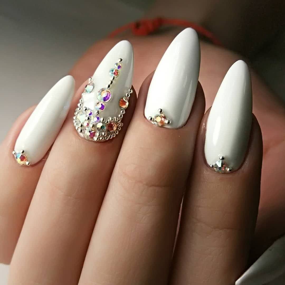 Острые ногти – выбор далеко не каждой женщины. Форма ногтей смотрится очень выразительно и заметно, к тому же часто нуждается в коррекции. Если вы счастливая обладательница острых ногтей, то не бойтесь экспериментировать с декором. Предлагаем вам большую фото-подборку шикарных идей острого маникюр со стразами. Выбирайте и создавайте подобные нейл-арты на своих ноготках.