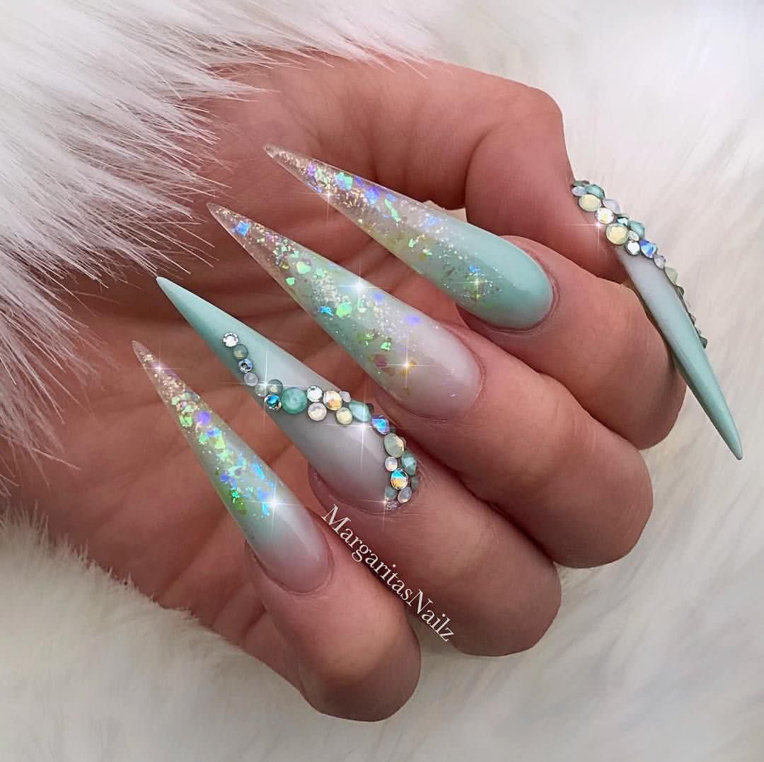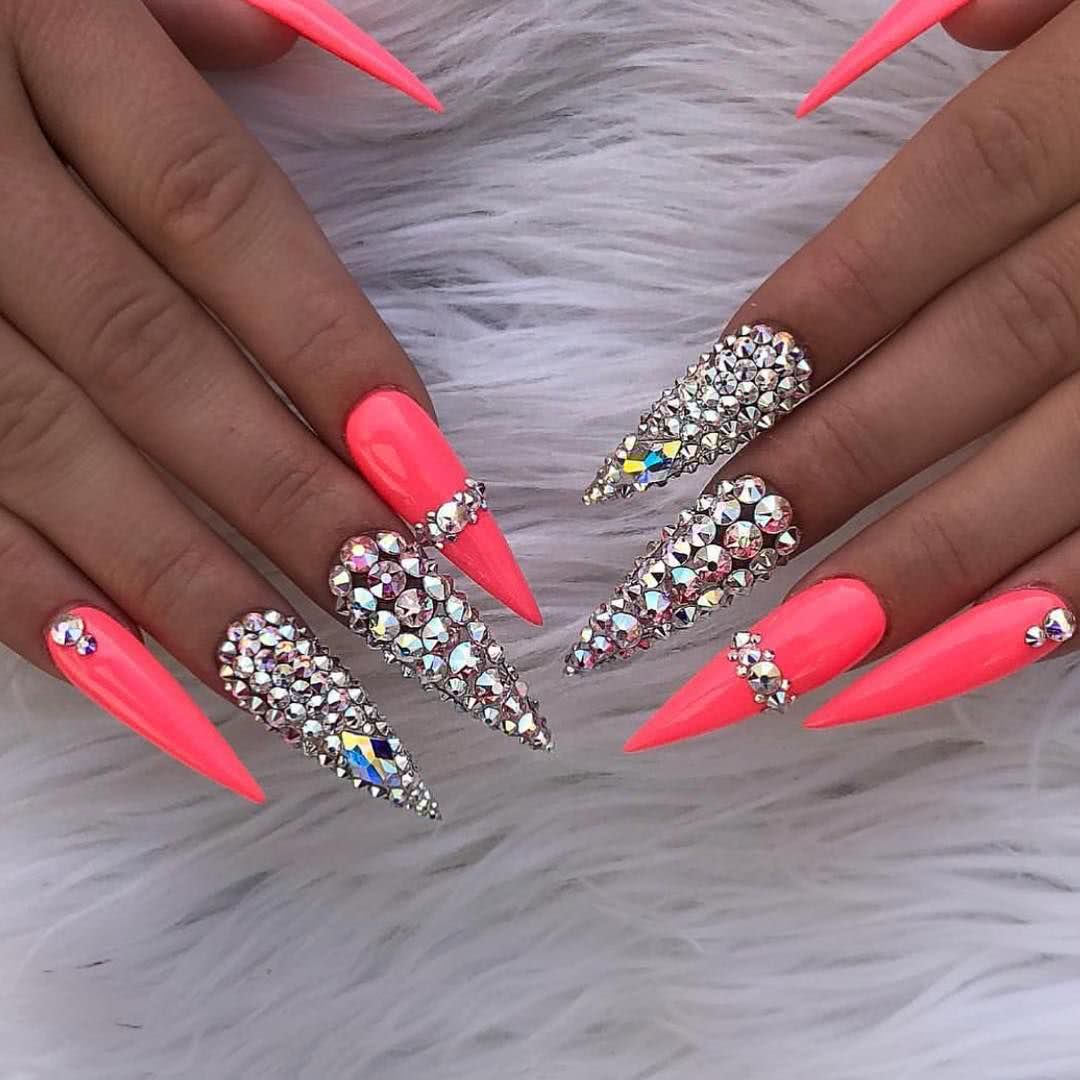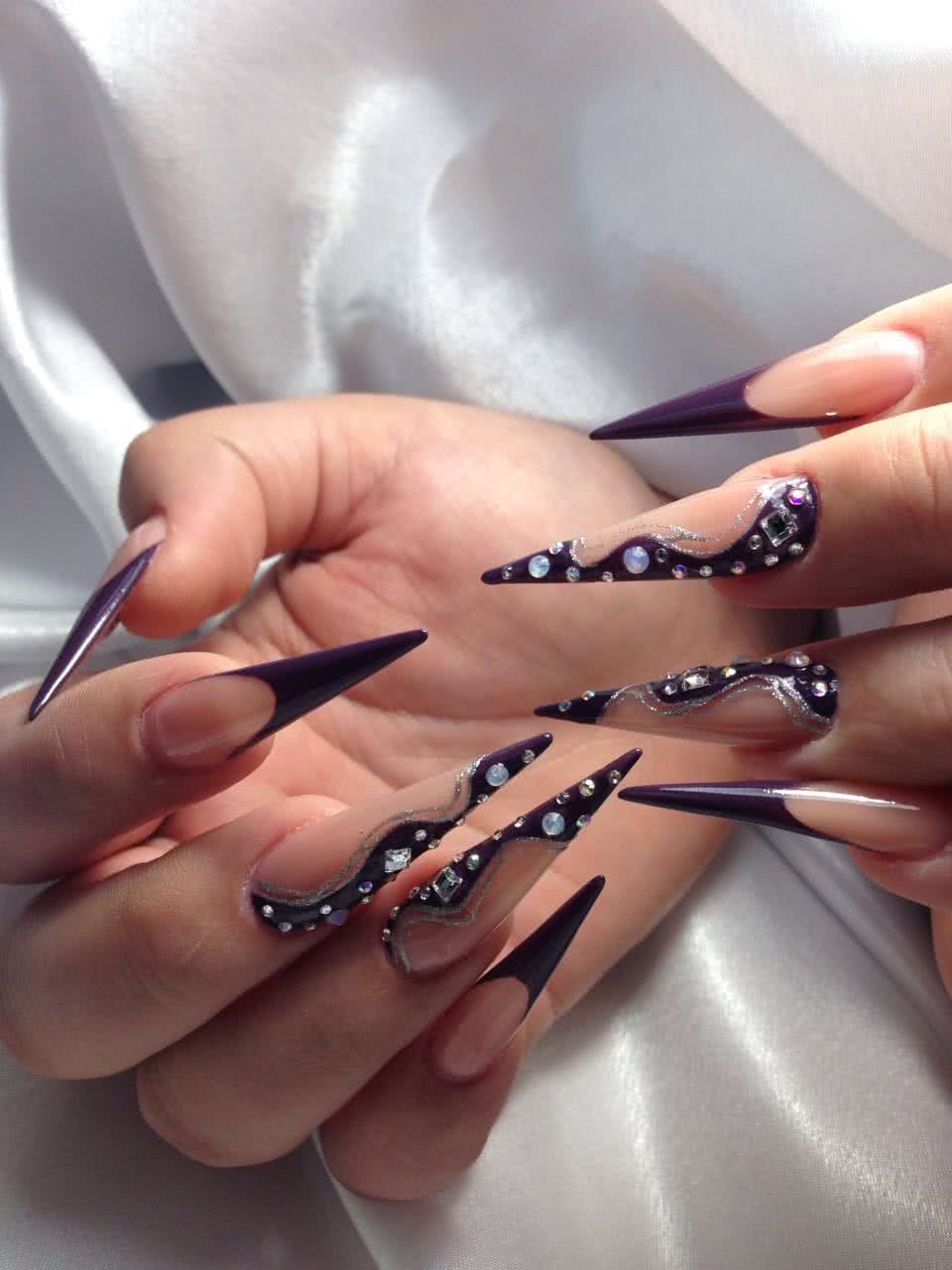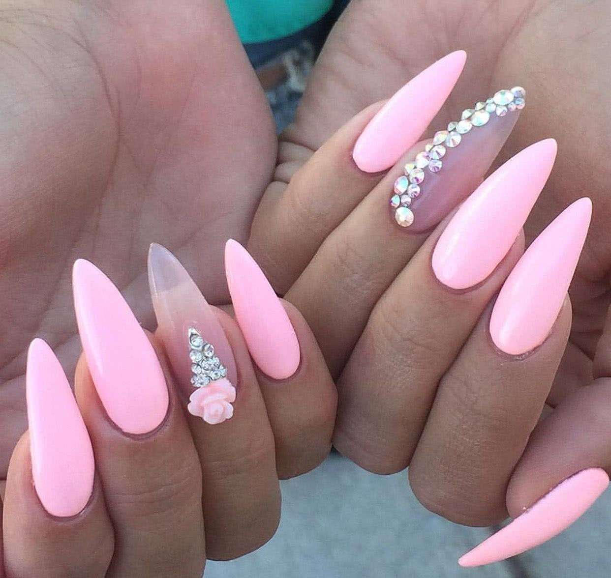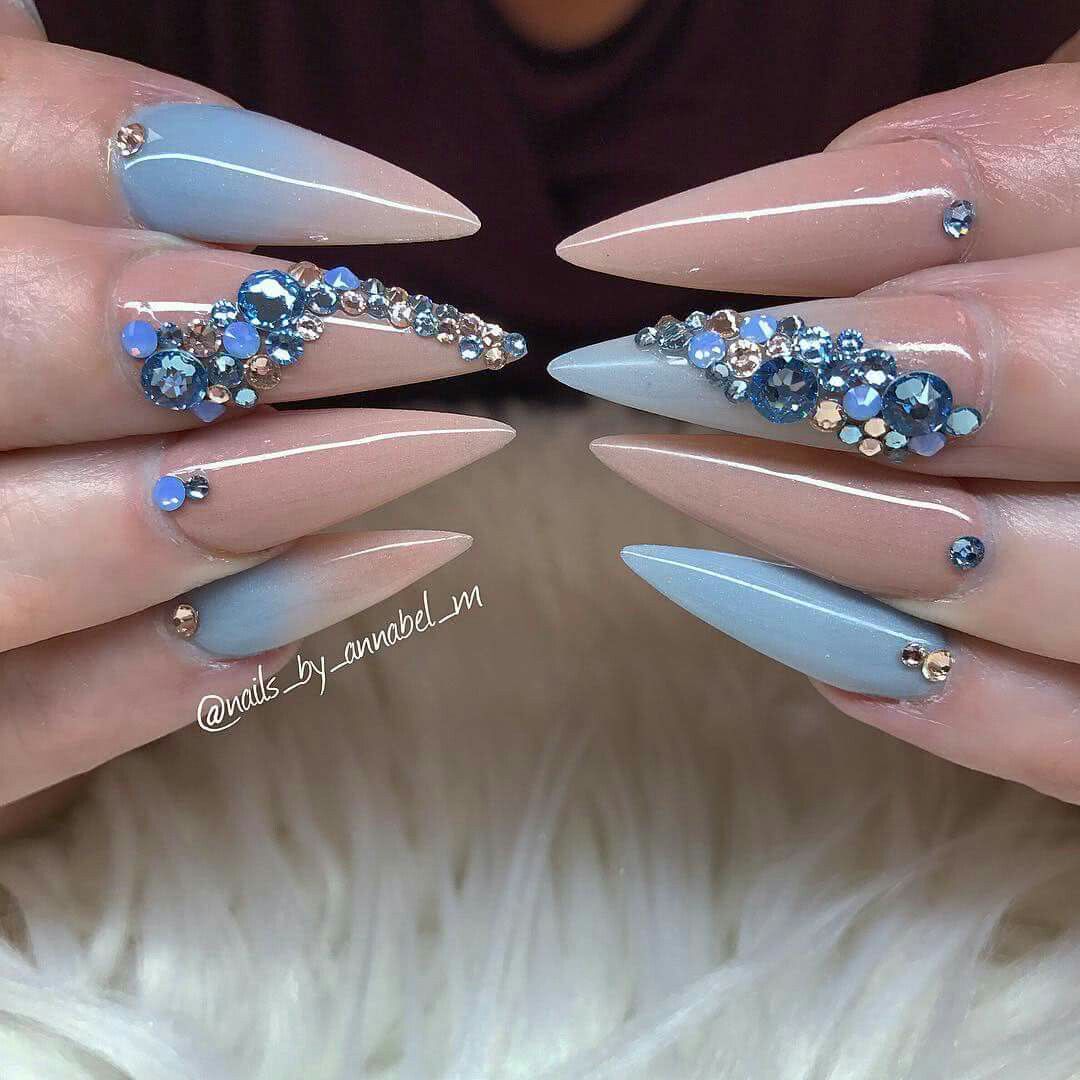 Острые ногти – выбор далеко не каждой женщины. Форма ногтей смотрится очень выразительно и заметно, к тому же часто нуждается в коррекции. Если вы счастливая обладательница острых ногтей, то не бойтесь экспериментировать с декором. Предлагаем вам большую фото-подборку шикарных идей острого маникюр со стразами. Выбирайте и создавайте подобные нейл-арты на своих ноготках.