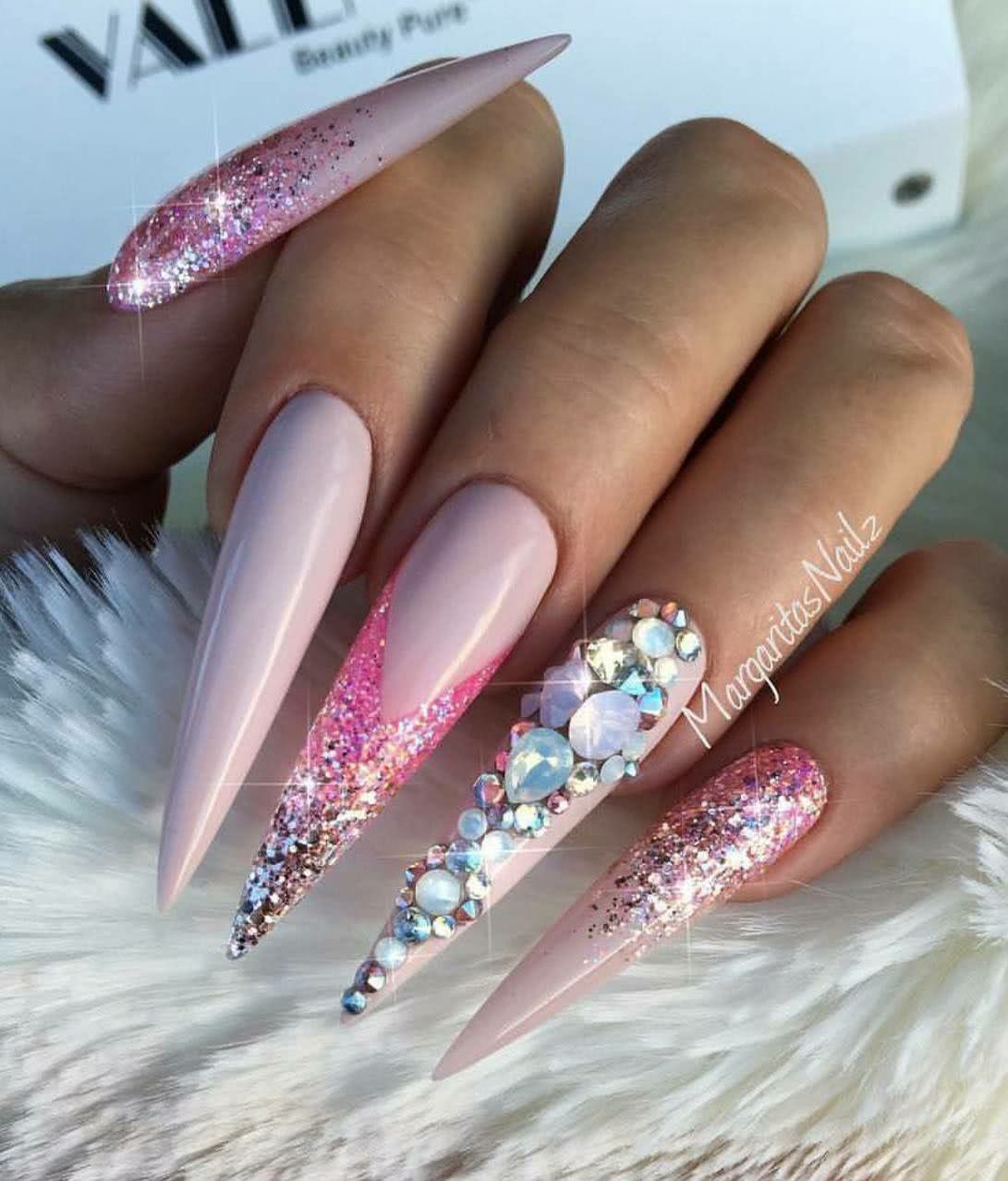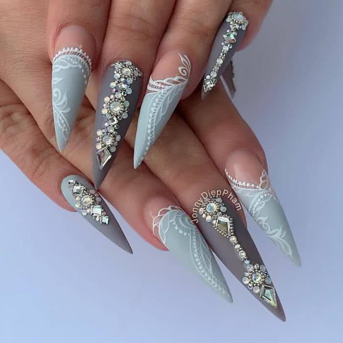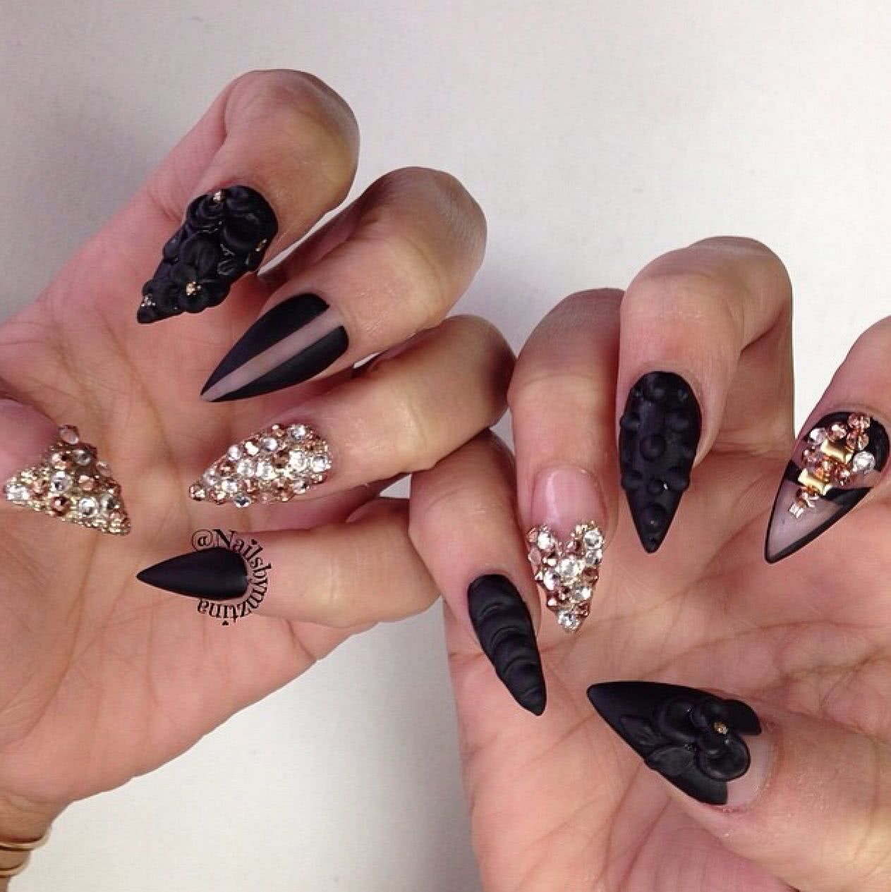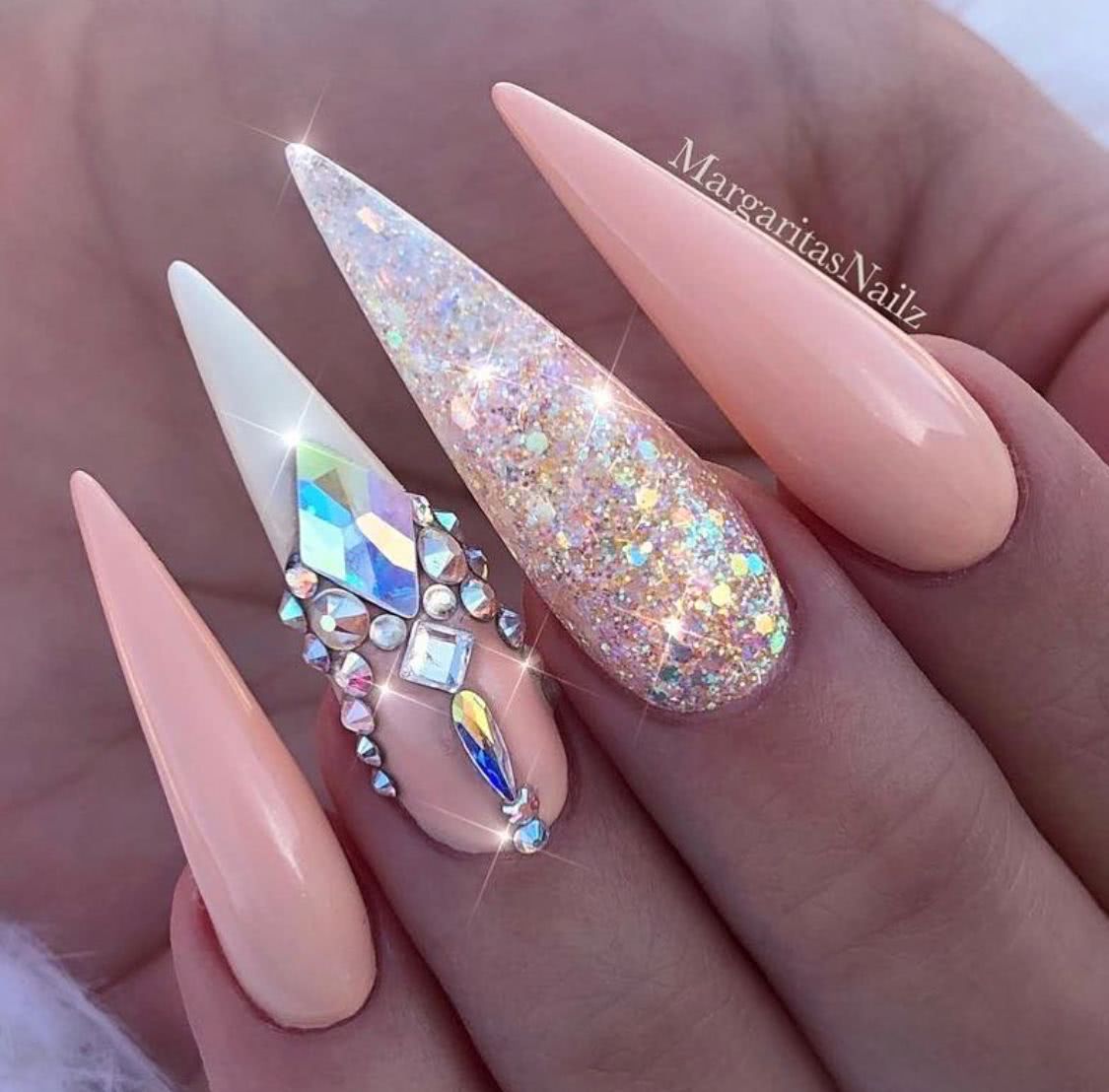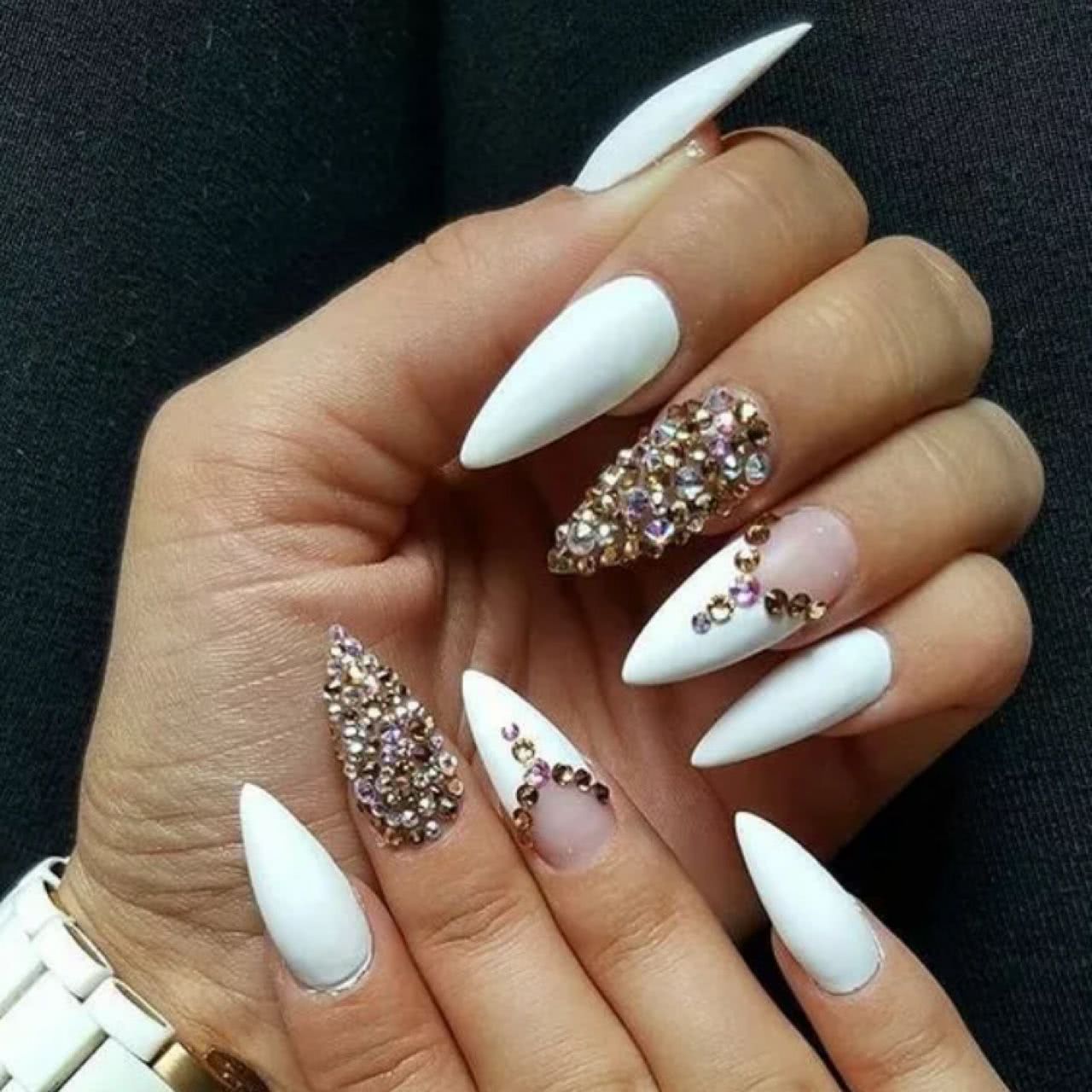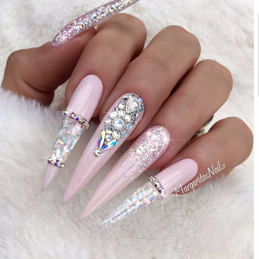 Острые ногти – выбор далеко не каждой женщины. Форма ногтей смотрится очень выразительно и заметно, к тому же часто нуждается в коррекции. Если вы счастливая обладательница острых ногтей, то не бойтесь экспериментировать с декором. Предлагаем вам большую фото-подборку шикарных идей острого маникюр со стразами. Выбирайте и создавайте подобные нейл-арты на своих ноготках.