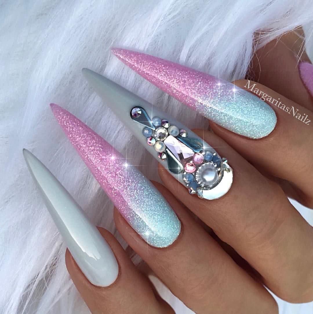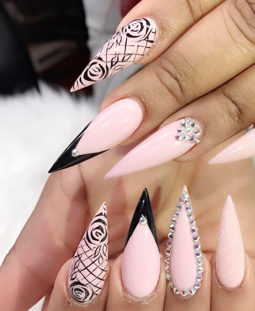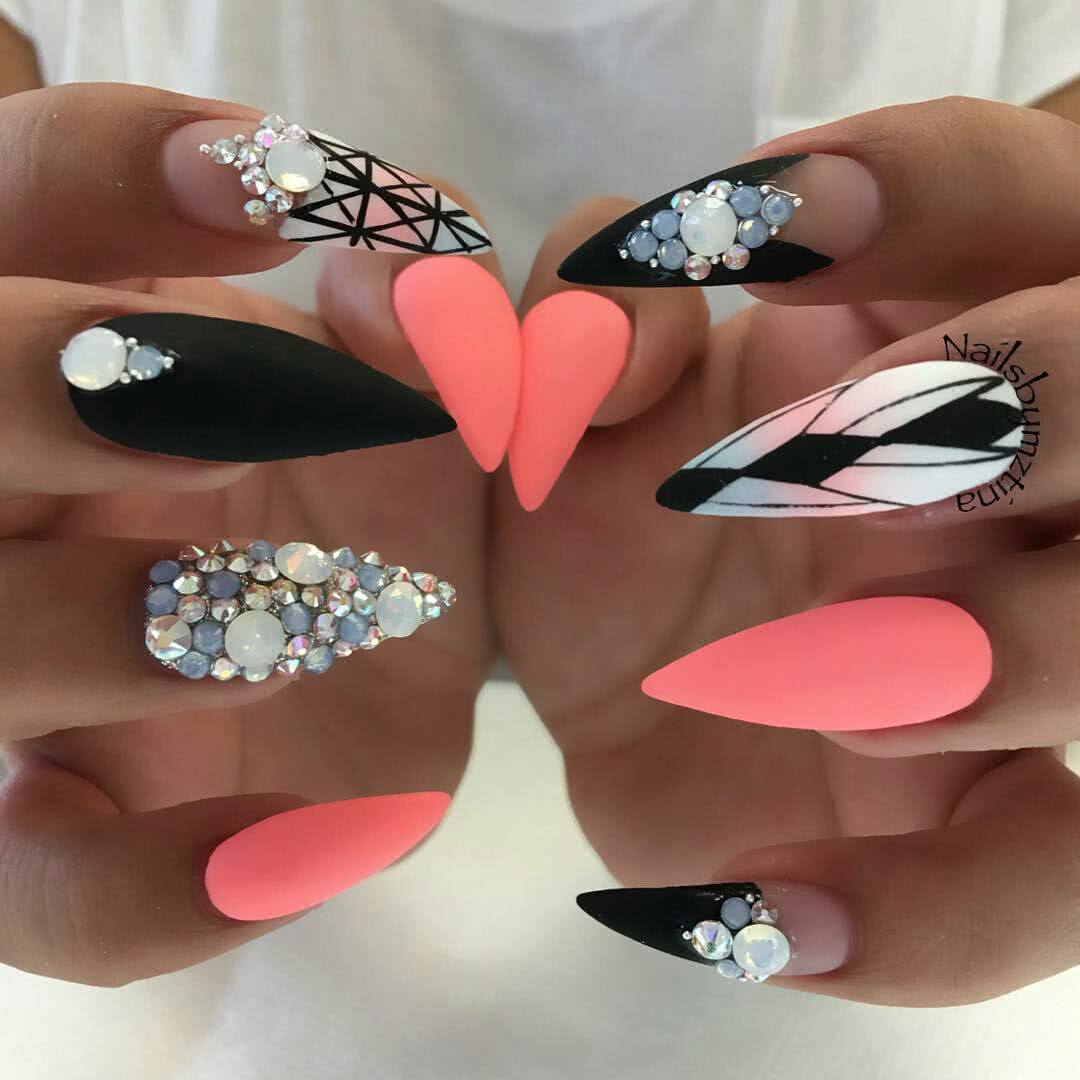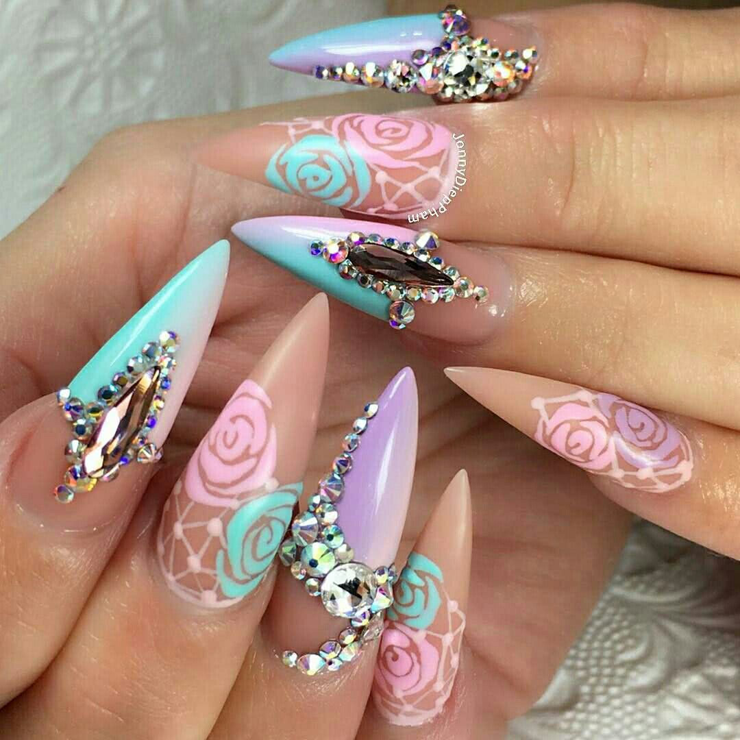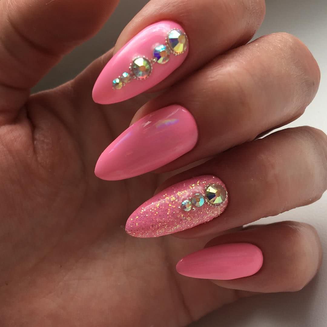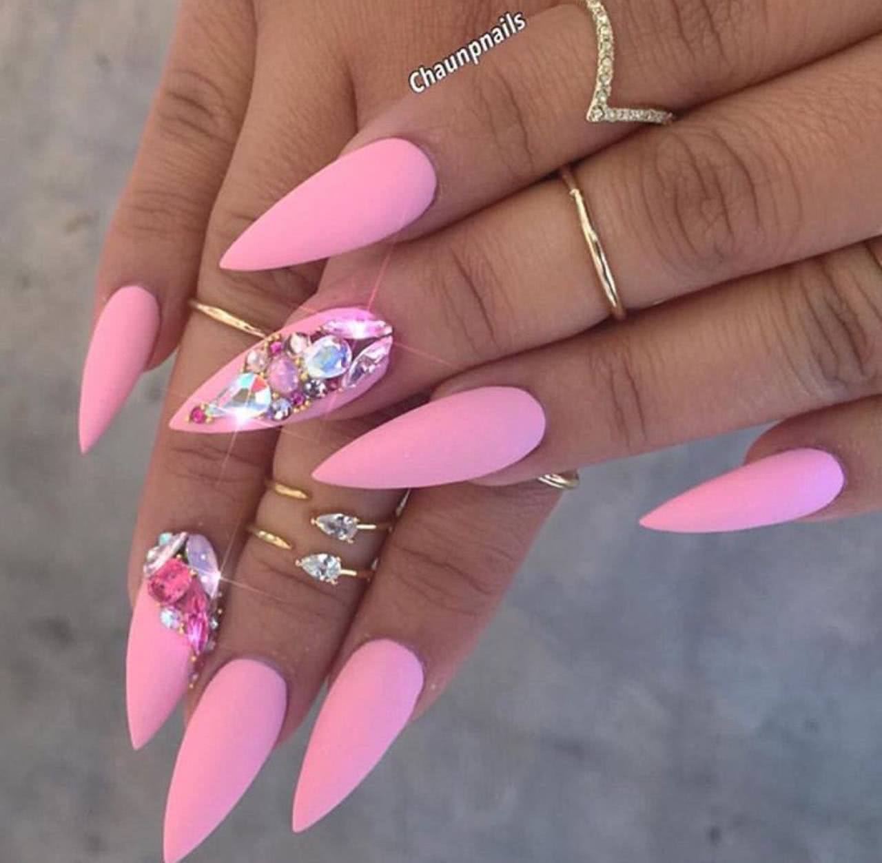 Острые ногти – выбор далеко не каждой женщины. Форма ногтей смотрится очень выразительно и заметно, к тому же часто нуждается в коррекции. Если вы счастливая обладательница острых ногтей, то не бойтесь экспериментировать с декором. Предлагаем вам большую фото-подборку шикарных идей острого маникюр со стразами. Выбирайте и создавайте подобные нейл-арты на своих ноготках.