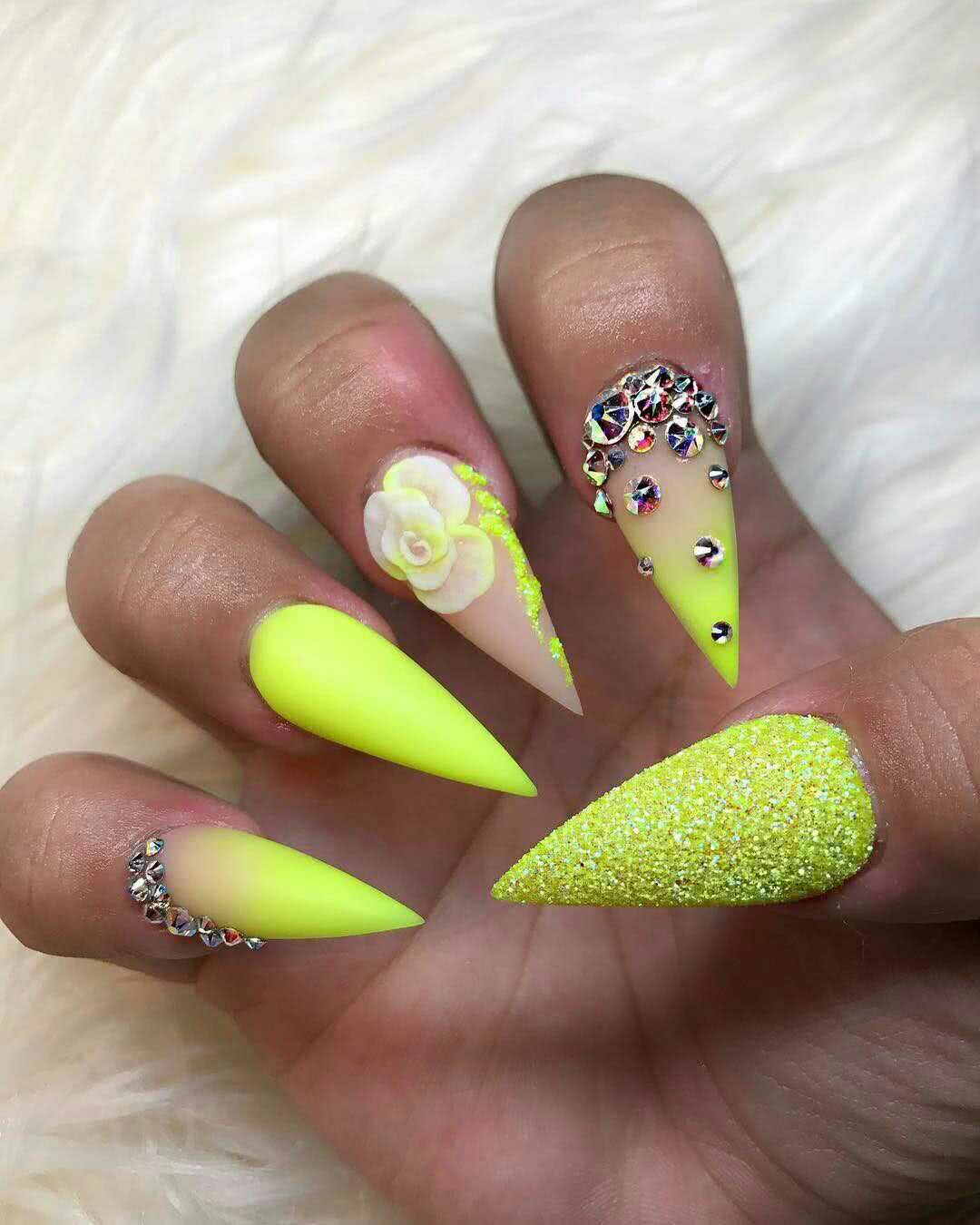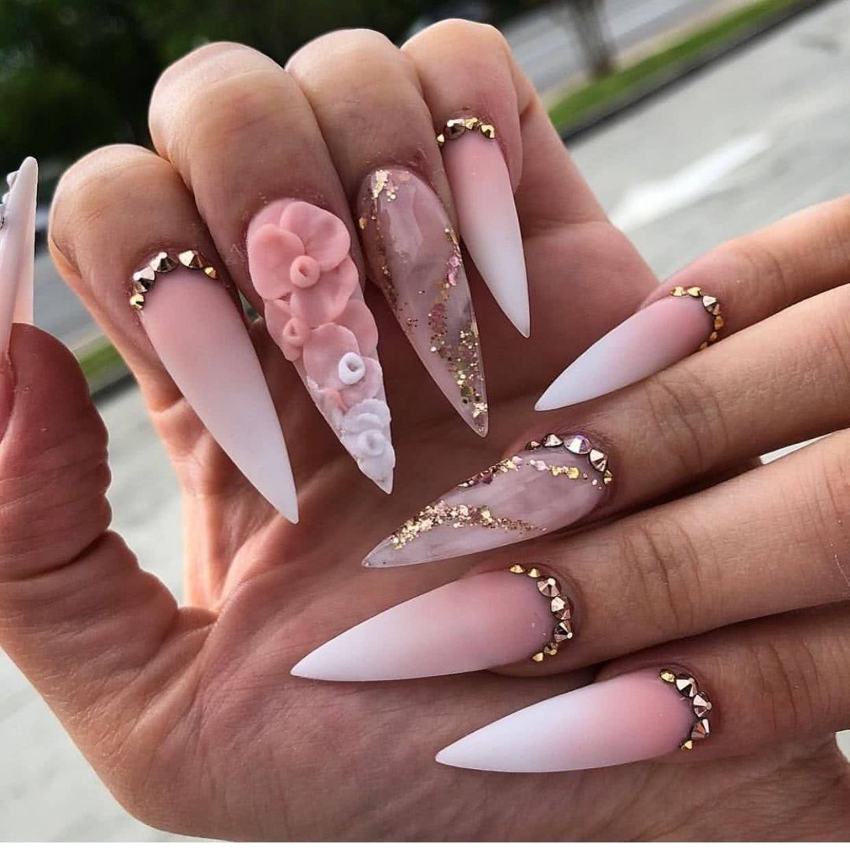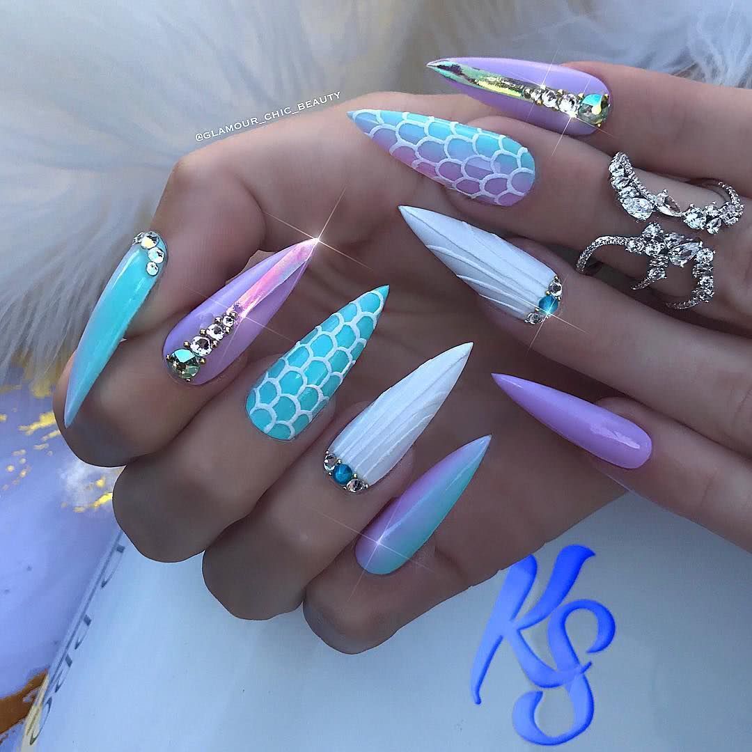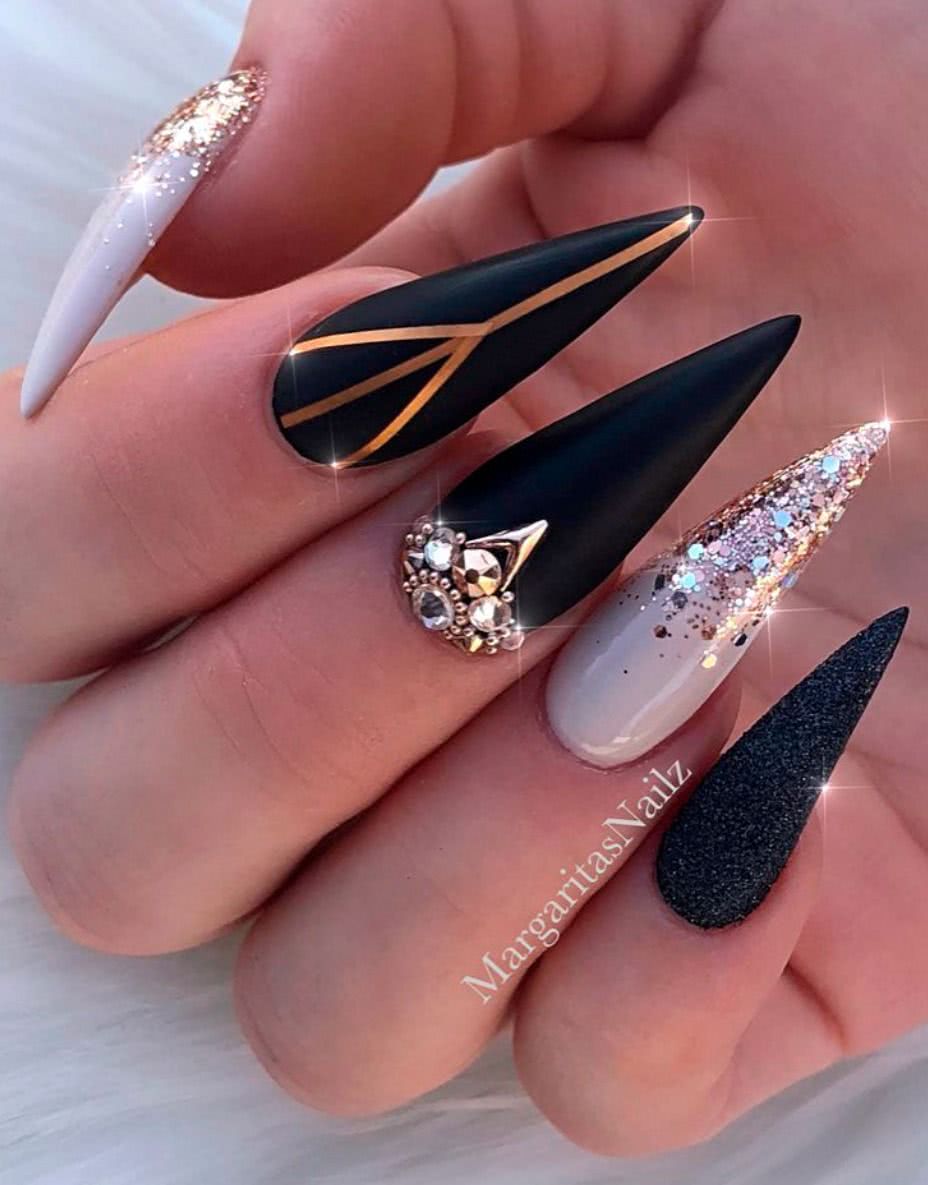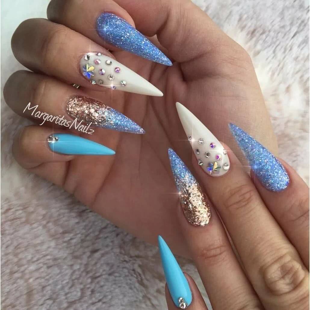 Острые ногти – выбор далеко не каждой женщины. Форма ногтей смотрится очень выразительно и заметно, к тому же часто нуждается в коррекции. Если вы счастливая обладательница острых ногтей, то не бойтесь экспериментировать с декором. Предлагаем вам большую фото-подборку шикарных идей острого маникюр со стразами. Выбирайте и создавайте подобные нейл-арты на своих ноготках.