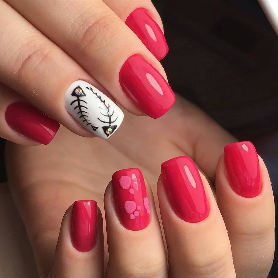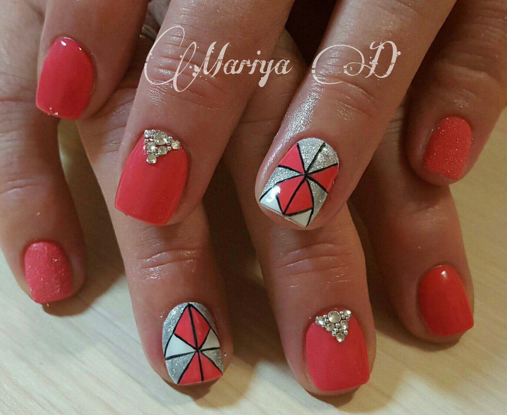 Вторым по-популярности, в этом сезоне является красный маникюр с различными рисунками. Это самое востребованное и желанное сочетание — вне моды и времени. Как мы знаем, красные ноготки любит большая часть прекрасной половины человечества, и рисунки на ноготках предпочитает не меньшее их количество.