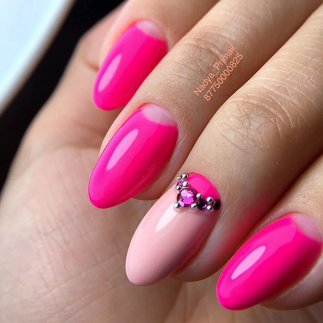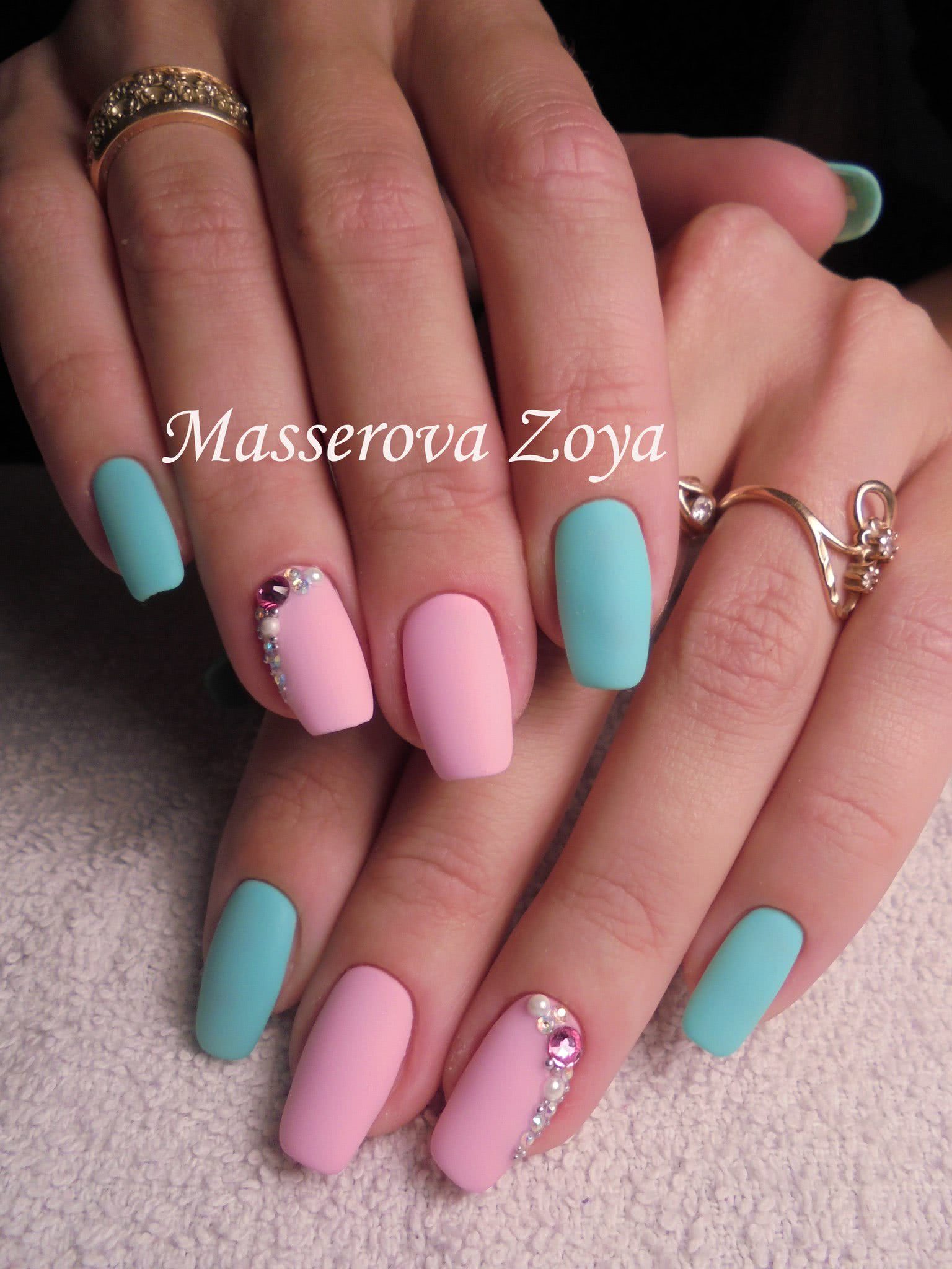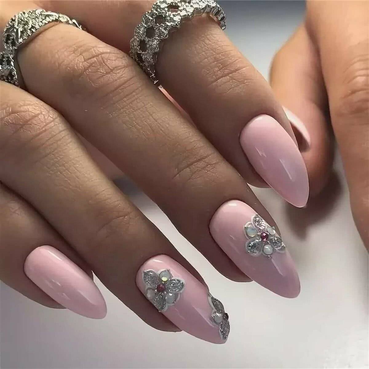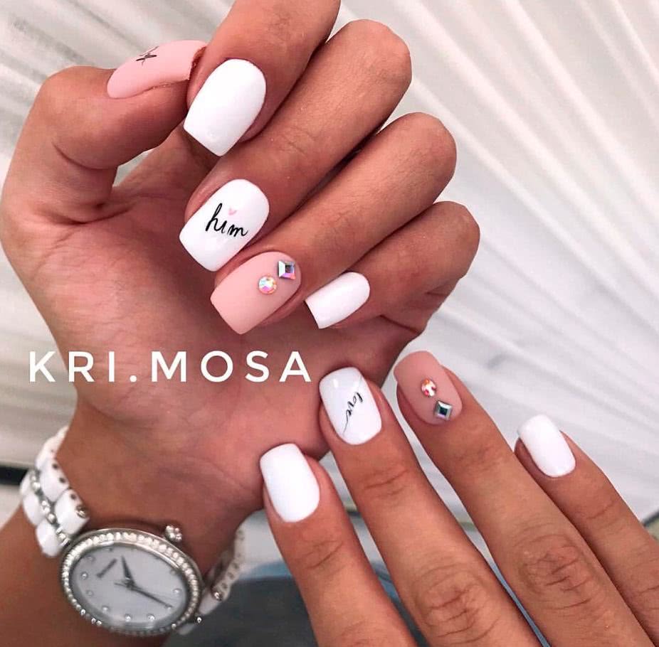Имена подобная манера исполнения будет уместна для любой длины и формы ногтей. Для украшения подойдут камни, бусины, стразы.